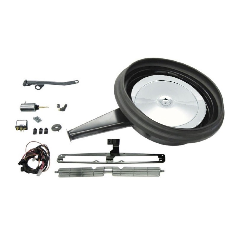 This kit comes complete with every necessary item to install a functional cowl induction system on your big block Camaro with a cowl induction hood. Kit includes air cleaner base, chrome lid, filter, steel flange, rubber seal, steel extension (where applicable), wiring harness, hood grommet, throttle arm, relay, electric solenoid, valve frame, flipper door, clips, and hardware.Kit Contains:(1) Cowl Induction Hood Valve Frame Screw Kit(1) Cowl Induction Wiring Grommet(1) Cowl Induction Electric Solenoid Switch(1) Cowl Induction Harness(1) Cowl Induction Firewall Relay(1) Cowl Induction Electric Solenoid Clip(1) Cowl Induction Valve Frame Door(1) Cowl Induction Air Cleaner Assembly (Chrome Lid)(1) Cowl Induction Valve Frame Door Clips(1) Cowl Induction Hood Valve Frame(1) Cowl Induction Air Cleaner Flange(1) Cowl Induction Air Cleaner Rubber Seal(1) Cowl Induction Solenoid, GM # 1114427(1) Cowl Induction Throttle Arm