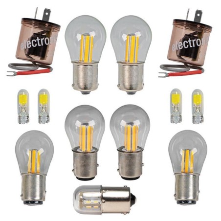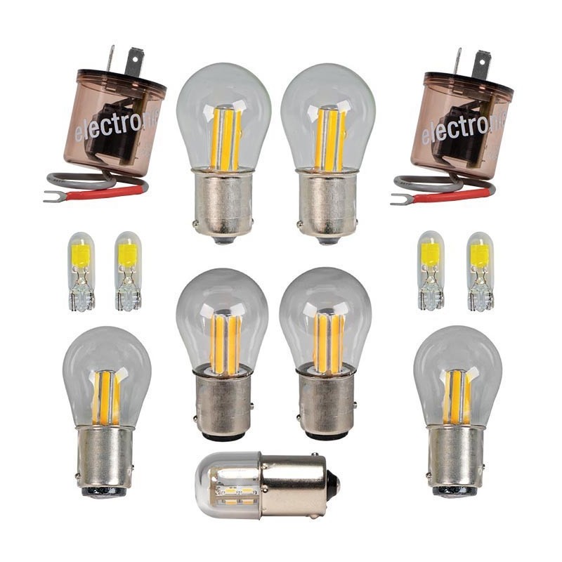 Upgrade your vehicle?s exterior lighting with the Addictive Flow Exterior LED Bulb Kit with clear parking light bulbs. This complete set includes LED replacements for side markers, backup lights, park/turn signals, tail/stop lights, and the license plate lamp, along with two LED flashers. Designed to improve brightness, efficiency, and reliability, this kit enhances both the visibility and style of your vehicle?s exterior lighting.