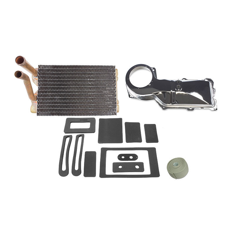 These new convenient Camaro heater core kits come with all the major components you need to refresh your ride. These kits include a new OEM heater core, chrome heater box cover, seal kit, and factory caulking material.Kit Contains:(1) V8 Without Air Conditioning Heater Box Seal Kit(1) Heater Box Sealant Caulk(1) Big Block Without Air Conditioning Heater Box Cover Chrome(1) Big Block Without Air Conditioning Heater Core