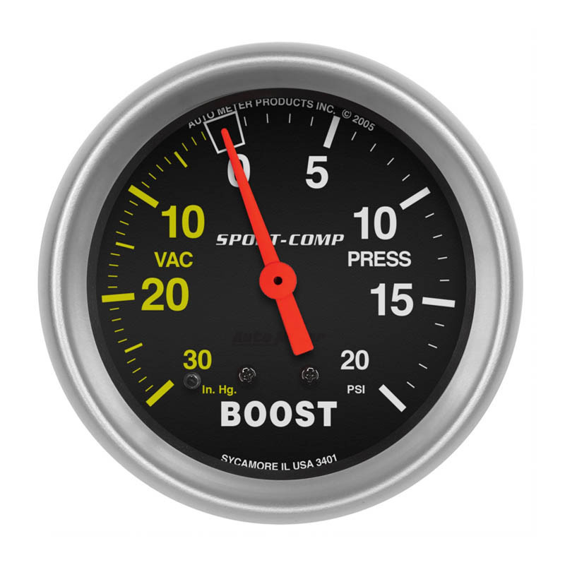 1967-2002 & 2010-2021 Camaro AutoMeter 2-5/8in. Boost/Vacuum Gauge, 30 In Hg/20 PSI, Sport-Comp 3401