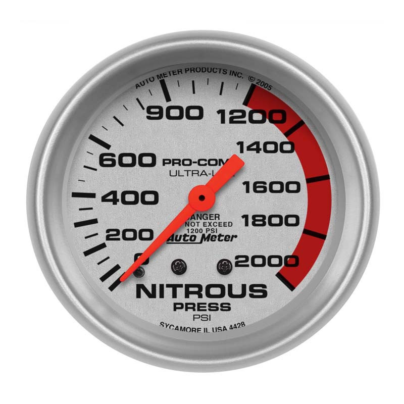 A bomb proof meter movement in the AutoMeter Mechanical Nitrous Pressure Gauge provides the robustness necessary to deal with ultra high pressures found in your Camaros brake system. These race proven gauges back up their toughness with the most precise bourdon tube meter movement available for unparalleled accuracy. A -4AN connection on the rear of the gauge simplifies installation and no electrical connection is necessary for operation, making it ideal for extreme track cars. Features:Traditional incandescent lighting illuminates around the perimeter of the dial AutoMeter's race proven mechanical instruments provide trusted accuracy while being simple to installNo electrical system required for gauge operation - compatible with every street or race vehicle Gauge kit includes, bulb and socket assembly, red and green bulb covers, mounting hardware, and detailed instructions for installation Gauge threaded for -4AN, allowing an easy installation into the nitrous system