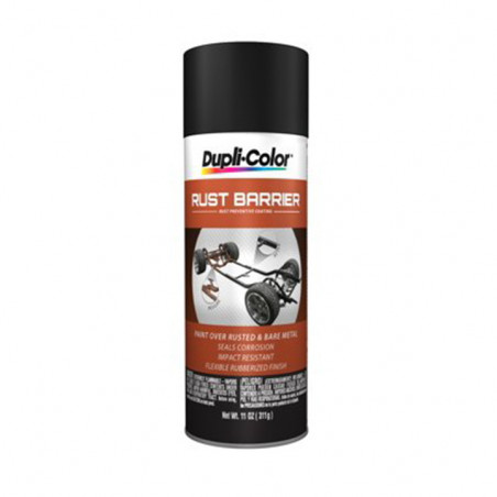 Dupli-Color Rust Barrier High Solids Rust Preventative Coating is formulated to be applied directly over rusted or bare metal surfaces. Using their exclusive Rust Barrier Technology, this coating seals corrosion and provides an abrasive, impact resistant flexible rubberized finish. If needed, this product can be top coated for areas exposed to increased UV light. Intended for underbody application.