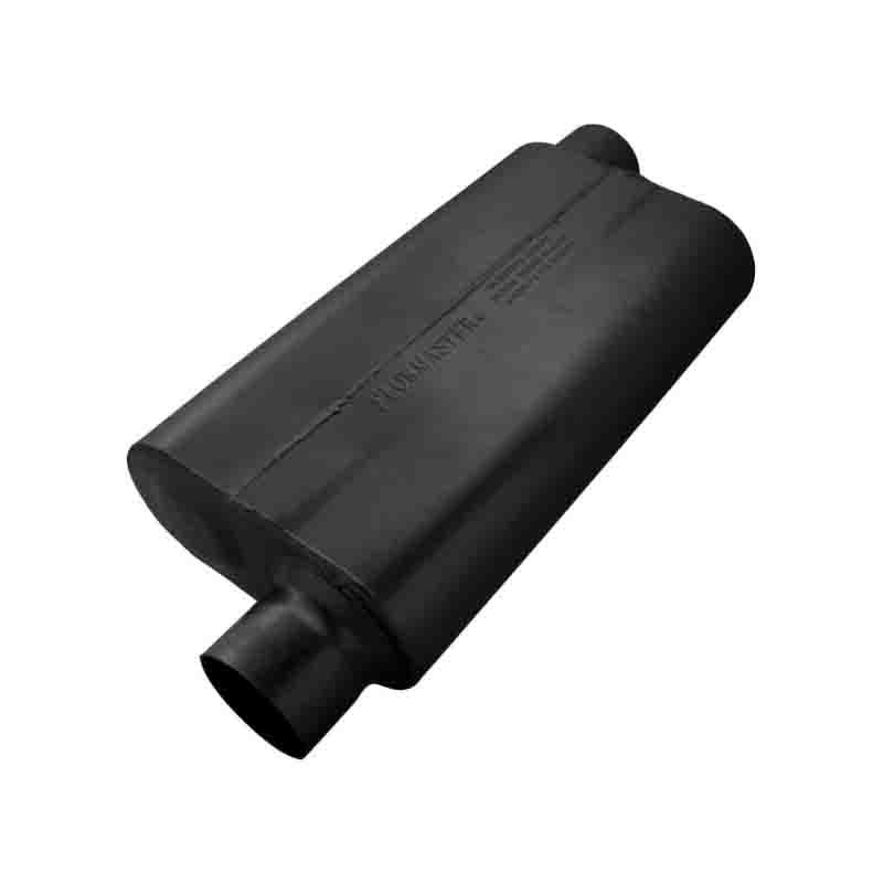 The three chamber design utilizes Flowmaster's patented Delta Flow technology along with an internal tuning chamber to reduce sound inside the vehicle. Provides the same performance and exterior tone characteristics as the two chamber, but with less interior resonance. Constructed of 16 gauge aluminized steel and fully MIG welded for maximum durability.Features:Improved Horsepower, Torque and Engine EfficiencyExcellent choice for Street Rod cars and trucksMild interior resonanceModerate SoundSpecifications:Body Height (in): 4Body Length (in): 17Body Width (in): 9.75Fitment: UniversalInlet Connection Type: Pipe ConnectionInlet Diameter (in): 3Inlet Position: OffsetMaterial: Aluminized SteelMount Type: Uses New Hangers (Not Included)Muffler Series: 50 Series Delta FlowMuffler Type: ReflectionOutlet Connection Type: Pipe ConnectionOutlet Diameter (in): 3Outlet Position: OffsetOverall Length (in): 23Shape: OvalSound Level: Moderate Sound