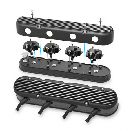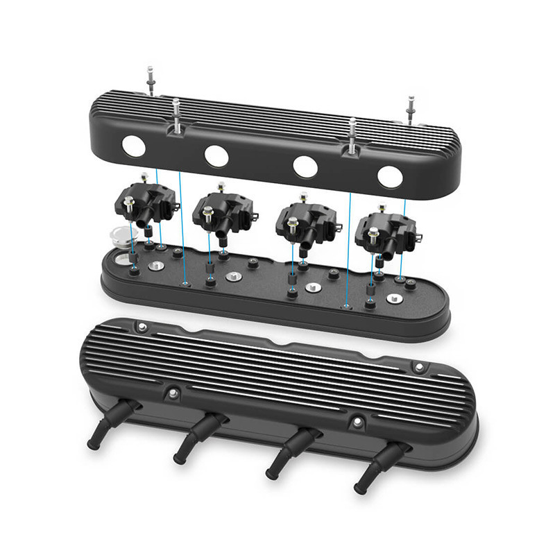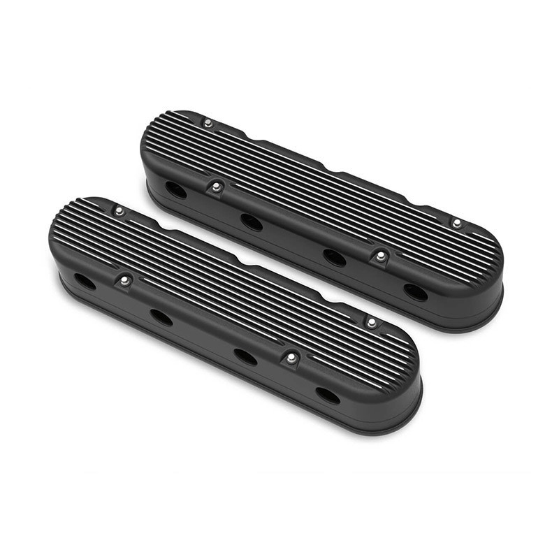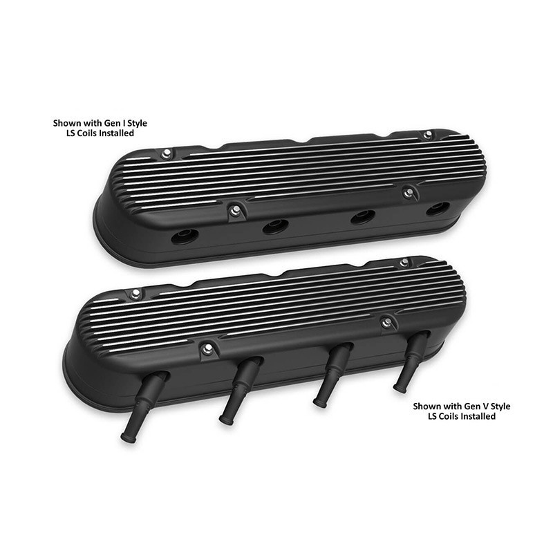 Holley's 2-Piece LS valve covers are a great way to update the look of your Camaro's LS engine without the use of complicated adapter systems or the hassle of remote coil relocation. These modular LS valve covers feature an OE height, internally baffled LS valve cover base with integrated coil mounts for popular Gen I and Gen V style LS coil bodies, and a vintage finned overcover that hides the unsightly LS coils and messy wiring harness - allowing the full performance benefits of coil-on-cover ignition setups without the robotic styling. Each modular coil cover features a billet aluminum simulated oil fill cap which helps maintain the original Pontiac styling. The coil cover also features cast-in provisions for the spark plug boots and coil wiring harness so no extensions or custom wiring is required. Each 2-Piece LS valve cover set includes a low-profile billet oil fill cap, 2 billet simulated fill cap assemblies, hardware and spacers for mounting both versions of LS coil bodies, and dress up hardware and rubber grommets for the coil covers.Features:Cast aluminum 2-Piece LS valve covers designed to mount and hide both Gen I and Gen V style LS coil bodiesRetain the performance of factory coil-on-cover ignition without the unsightly stylingCoil cover features vintage Pontiac valve cover styling with a billet aluminum simulated fill cap assembly and cast-in wiring provisionsBase fits LS1, LS2, LS3, LS6 and LS7 engines with clearance for .750" lift cam with stock style rocker armsBase features internally baffled ventilation systemNo coil relocation, wire harness extensions, or custom spark plug wires requiredIncludes low-profile billet oil fill capIncludes all necessary coil mounting provisions and dress-up hardwareSpecs:Finish:Satin Black MachinedMaterial:Cast AluminumOverall Height (in):3.75"Valvetrain Clearance:.750" lift cam with stock style rocker arms