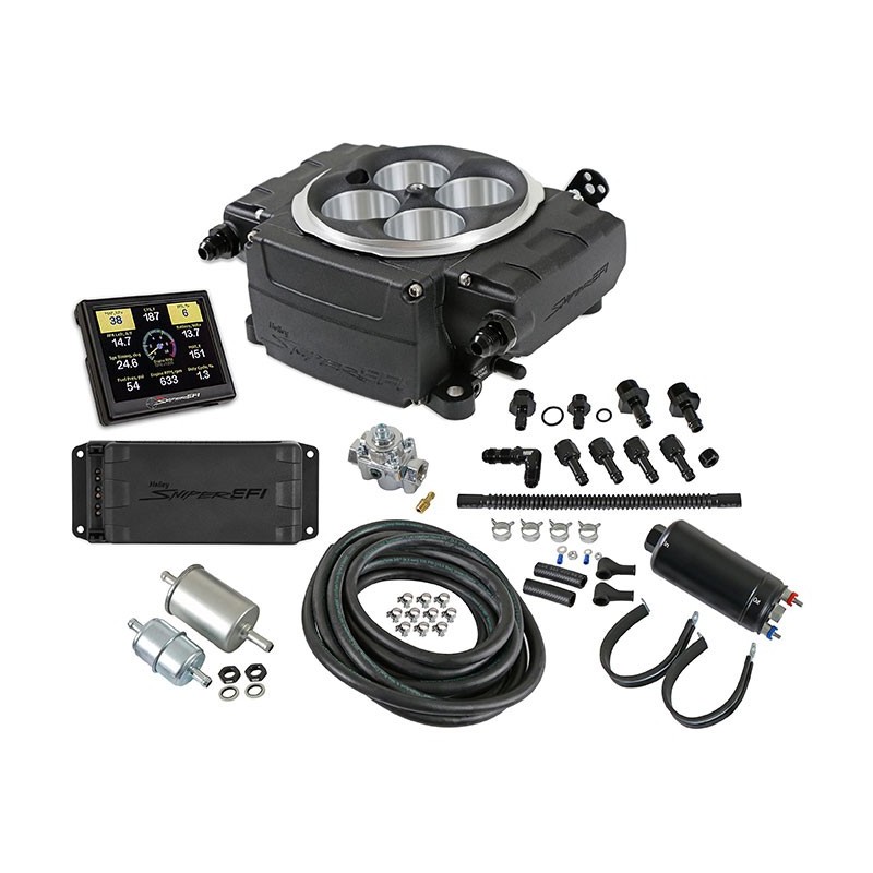 The #1 EFI conversion system just got better! Introducing Sniper 2 EFI - a self-tuning, easy-to-install, EFI conversion for common 4-barrel (4150 flange) style carburetors. We took everything that we learned from the original Sniper EFI system and added 14 new features that will make your EFI conversion more simple, reliable, and modern. Like all Sniper EFI systems, Sniper 2 is designed to work with the Sniper Ecosystem that includes Hyperspark ignition, complete fuel systems, multiple user interfaces/dash displays, and more. New for Sniper 2 is the optional Power Distribution Module (PDM). This cost-effective and optional accessory isolates the core of your EFI and ignition wiring into one, easy-to-use location. Simply slide the stripped wire ends under the positive lock connector and tighten down the set screw. Battery and a switched 12-volt source is all that's required from your vehicle to power the PDM and your Sniper EFI. Make your classic drive like a modern fuel-injected vehicle, including easy cold starts, smooth drivability, and improved fuel economy! Sniper 2 is designed to be installed at home in your garage with limited tools and the support of Holley's comprehensive installation manual and videos. The user-friendly setup wizard allows you to answer a few simple questions about your engine and the system will begin self-tuning with no laptop or tuning experience required. If you're looking for a high-performance fuel injection system that delivers power, efficiency, and ease of use, look no further than the Sniper 2 EFI.Features:Main FeaturesAll new design – the #1 EFI Conversion just got better!Only four wiring connections required: Battery+, Battery-, Switched Ignition, and RPMCalibration wizard only requires that you answer a few simple questions about your engine to create a base map and begin self-tuning – No laptop requiredSupports up to 650hp naturally aspirated or 575hp on boost with four 100 lb/hr injectors(NEW) Next generation ECU features improved RF noise and interference resistance (stands up to old car wiring, noisy alternators, faulty plug wires)(NEW) Redesigned throttle shaft and plate geometry for a smoother throttle feelSniper 2 is Part of the Sniper EFI Complete EcosystemSniper 2 is compatible with the complete Sniper EFI Ecosystem that includes plug-n-play Hyperspark Ignition systems (coil, ignition box and distributor), fuel systems (fuel lines, fuel pump hangers), multiple displays and more(NEW) Main harness includes plug-and-play HyperSpark distributor support, for integrated timing control, making your ignition setup hassle free(NEW) Adaptors for other ignition types sold separately: 558-329 CD Box to Sniper 2, 558-330 MSD Pro Billet / Crank Trigger to Sniper 2(NEW) Wide Variety of tuning and gauge display interfaces: from a 3.5-inch full color LCD Handheld, 5-inch Digital Dash, or the Bluetooth dongle, which allows you to connect either an iOS or Android based cell phone to your Sniper 2(NEW) Optional Power Distribution Module (PDM) further simplifies wiring, especially when used in conjunction with an ignition systemAvailable with fuel system kits: a complete fuel system consisting of: 20 ft. of 3/8 in. Vapor Guard Fuel Hose, Fuel Pump, fuel pressure regulator, filters, necessary hardware, and bulkhead fitting to return fuel into the tankAdditional Features(NEW) Integrated transmission kick down provisions for GM TH350/400, 200-4R/700R4 and Ford C4/C6 applications(NEW) “Hidden Harness” wiring harnesses exits from the rear of throttle body for a clean appearance(NEW) Inputs and outputs consist of: 2x Ground Inputs, 2x Ground Outputs, 1x TPS output (0-5v), and 1x Tach Output(NEW) Redesigned injector connector for improved reliability(NEW) Onboard contactless magnetic TPS sensor ensures an accurate TPS reading(NEW) Next Generation mil-spec style M8 positive lock connector for CAN1 and CAN2 provides the latest in CAN bus technology for a simple yet robust connection(NEW) Cast-in fuel crossover from the primary to secondary fuel rail(NEW) Sniper 2 throttle bodies are serialized in house, which provides each unit a birth certificate for an improved customer service and warranty experience in the event of any unit needing to be inspectedThe included genuine Bosch LSU 4.9 wideband oxygen Sensor provides real-time fuel map learningIncluded clamp-on oxygen sensor kit ensures a leak free oxygen sensor installation with stainless steel T-Bolt clamps and a stainless steel weldable oxygen sensor flangePatent Pending