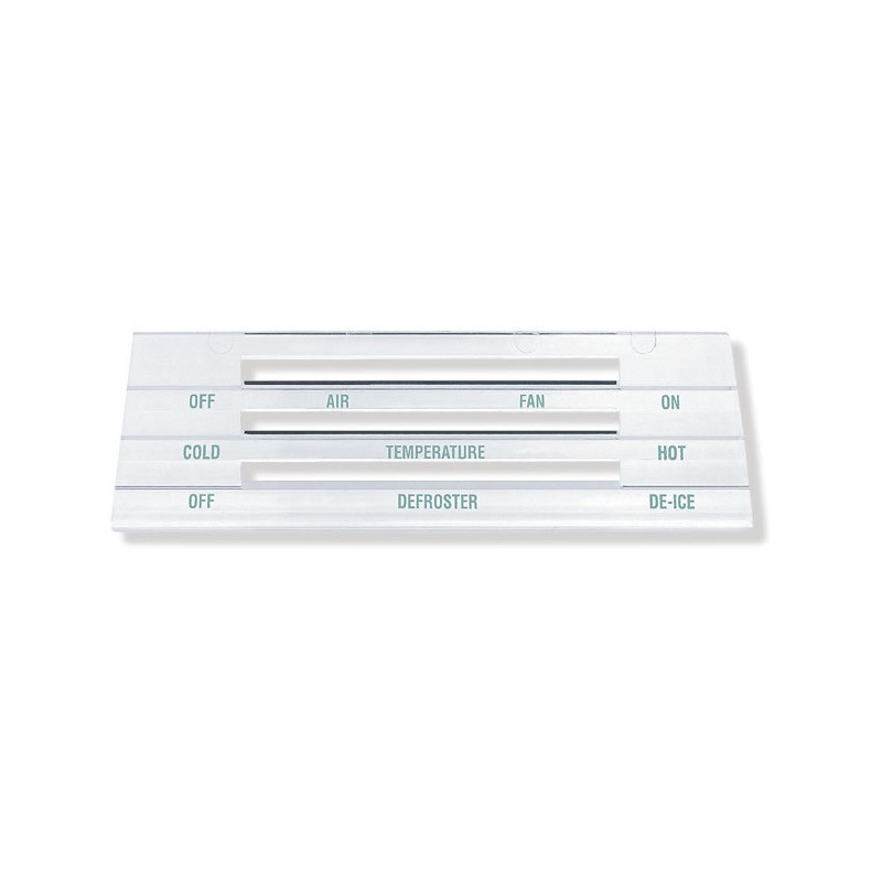 1967 Camaro reproduction heater control lens designed for use on models without air conditioning. Each heater lens is manufactured in quality acrylic lens material using injection molded process. Features precision screened lettering in translucent aqua for correct appearance.