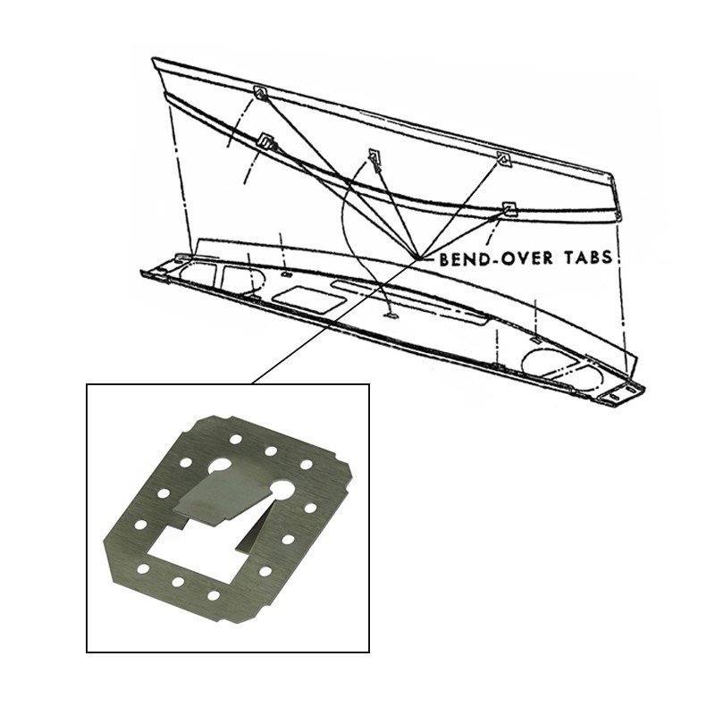 Unique factory installed rear package tray hold down clip. These are applied with high strength glue or epoxy. Fits many GM cars.