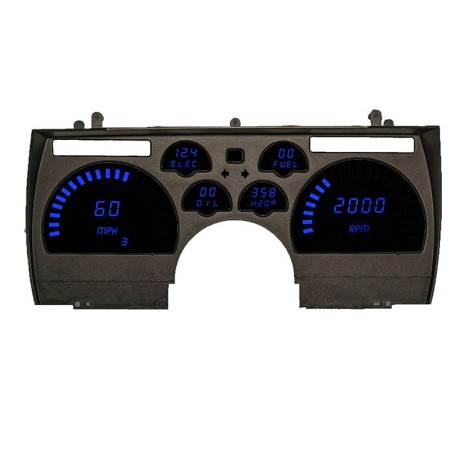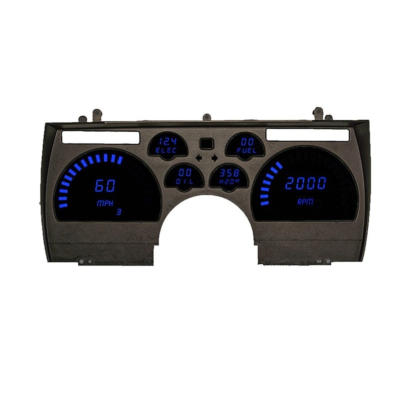 Feel the wind in your hair riding in your 1982-1990 Camaro with a state-of-the-art LED Digital Replacement Gauge Panel from Intellitronix. This dash comes with direct fit printed circuit boards, custom fit smoked plexiglass faceplate, universal water temperature S8013, oil pressure S8434, and speedometer S9013 sending units including sender and sensor for vehicles without electronic transmission or cruise control, and instructions for installation. Features:Speedometer reads up to 255 mph and includes odometer, trip meter, one button calibration, 0-60 time, _ mile elapsed time and high-speed recall.Tachometer displays 0-9999 RPM in 100, 10, or 1 RPM increments (ex. 9900, 9990, 9999). Fully programmable for 1-2-4-6-8-10-12-cylinder engines.Water Temperature displays a range of 18-255°F.Oil Pressure shows a range of 0-99 PSI.Voltmeter displays 7.0-18.0 volts range. No sending unit requiredFuel Level reads 0-99% range in 1% increments. User programmable to work with Ford, GM, Chrysler, VDO, and aftermarket 240-33 ohm industry standard fuel senders.The panel features turn signals, high beam indicators and parking brake.