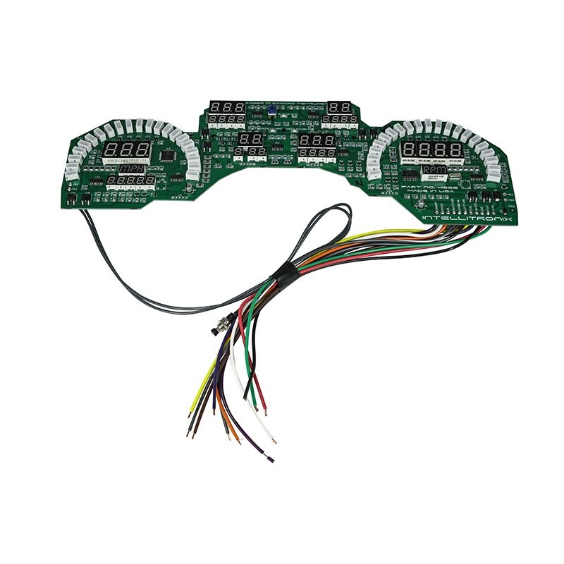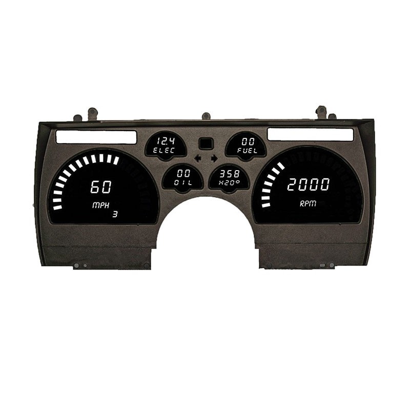 Feel the wind in your hair riding in your 1982-1990 Camaro with a state-of-the-art LED Digital Replacement Gauge Panel from Intellitronix. This dash comes with direct fit printed circuit boards, custom fit smoked plexiglass faceplate, universal water temperature S8013, oil pressure S8434, and speedometer S9013 sending units including sender and sensor for vehicles without electronic transmission or cruise control, and instructions for installation. Features:Speedometer reads up to 255 mph and includes odometer, trip meter, one button calibration, 0-60 time, _ mile elapsed time and high-speed recall.Tachometer displays 0-9999 RPM in 100, 10, or 1 RPM increments (ex. 9900, 9990, 9999). Fully programmable for 1-2-4-6-8-10-12-cylinder engines.Water Temperature displays a range of 18-255°F.Oil Pressure shows a range of 0-99 PSI.Voltmeter displays 7.0-18.0 volts range. No sending unit requiredFuel Level reads 0-99% range in 1% increments. User programmable to work with Ford, GM, Chrysler, VDO, and aftermarket 240-33 ohm industry standard fuel senders.The panel features turn signals, high beam indicators and parking brake.