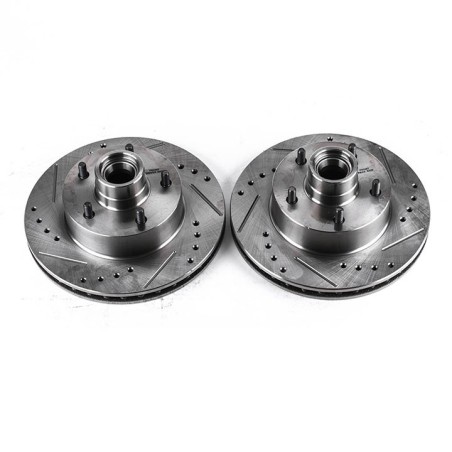 PowerStop drilled and slotted rotors provide a bolt-on upgrade for improved brake cooling and performance. Precision cross-drilled for maximum cooling and maximum performance during extreme conditions. The rounded slots sweep away gas, debris, and moisture to keep a clean friction contact patch on the rotor surface providing smooth, safe braking. Silver zinc dichromate plating resists rust and corrosion. With a direct OE fit, there are no special modifications needed. Upgrading the looks and stopping power of your vehicle has never been easier.Includes:Drilled & Slotted RotorsPlated using Silver Zinc-DichromateBeveled Drill HolesRounded Slots