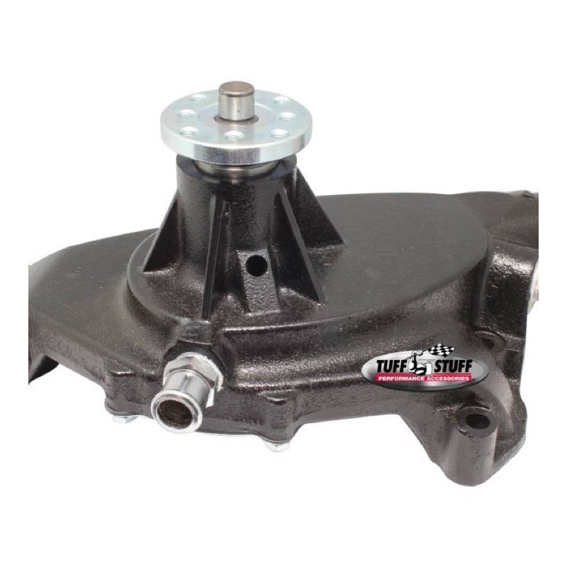 Tuff Stuff water pumps are hand made from premium quality new components - not remanufactured and are quality built in the USA. Precision-made ball/roller bearings and spin-balanced fan hub sustain higher RPMs. Tuff Stuff's SuperCool option includes a custom water impeller that flows 30% more coolant to reduce water temperature by up to 20 degrees. Black powder coated finish.
