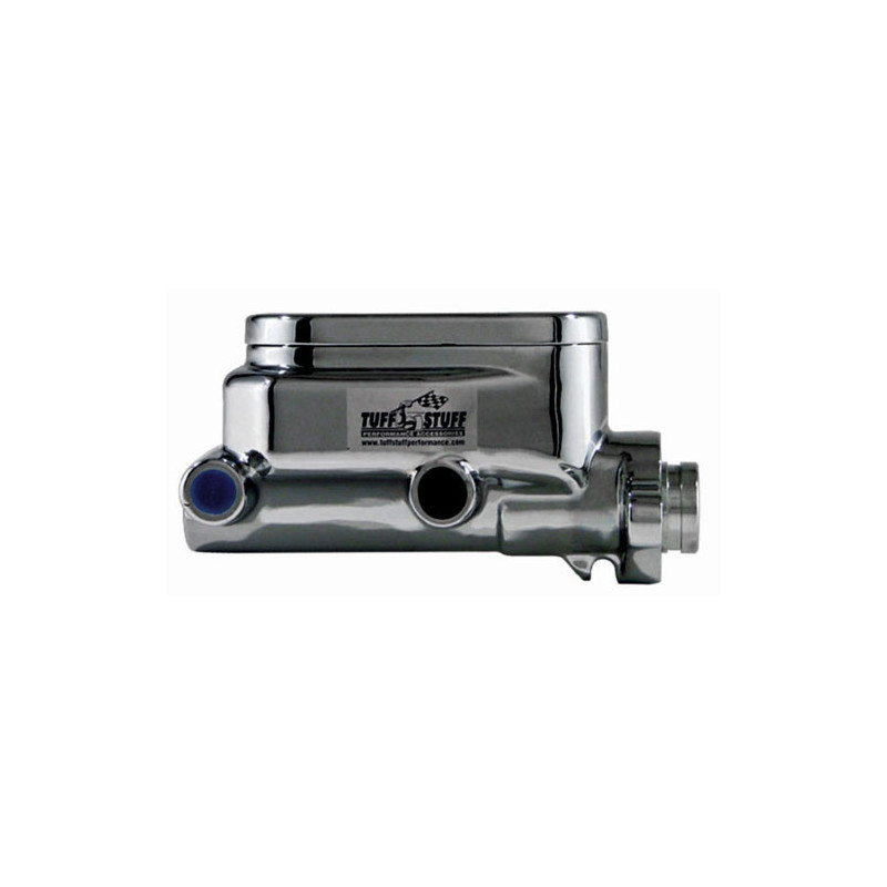 Tuff Stuff universal Smoothie dual reservoir master cylinder in black chrome aluminum finish. It features 1 Inch bore deep hole, and 9/16 inch and 1/2 inch lines on driver side of unit with 3-1/2 mounting bolt spacing. These Black Chrome finished aluminum master cylinders are ideal for customs, hot rods and muscle cars that want a stock look with high performance. The understated black chrome look compliments any engine compartment. Black chrome finish will not discolor, rust, or fade over time. Provides a consistent, eye-appealing finish for underhood accessories.