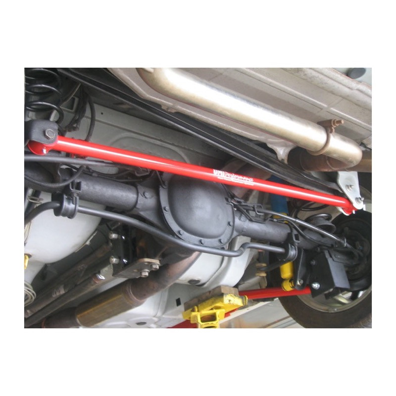 UMI's tubular non-adjustable panhard bar is a direct replacement for the flimsy stock stamped panhard bar, it adds strength as well as bushing improvement. The panhard bar greatly increases rear stability, controls side movement and body flex; a must when hard driving habits are present.Features:Built from 1.250 in. x 0.095 in. wall DOM tubingPrecision TIG welded constructionEnergy Suspension greaseable polyurethane bushings with grease fittingsUses OEM hardware, installs in 20 minutesBrilliant durable powder coat finish
