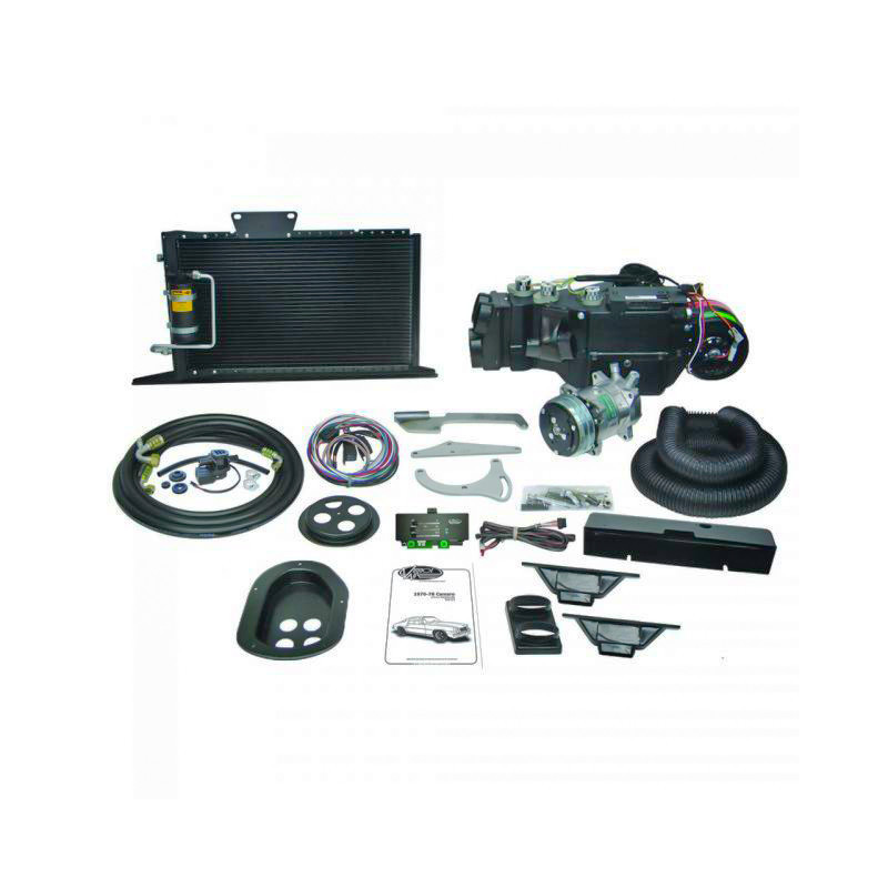 Vintage Air SureFit kits are the most complete, bolt-in climate control systems available for your 1974-1977 Camaro without factory air conditioning. SureFit kits install easily and utilize most of the factory sheet metal and body features and are engineered as vehicle specific complete systems.Our SureFit kits are designed to place the evaporator case and air duct hoses behind the dash for a factory-clean look. In most cases, the SureFit system will be controlled by your stock dash controls using our exclusive patented Cable Converters. In some applications, a new factory look control panel is included with the kit.All SureFit systems provide full OEM-style operations including air conditioning, floor or vent exit heating and a powerful dehumidified defroster. To retain a true factory look, the A/C air exits through the factory dash louvers, if originally equipped in your cars dash. SureFit kits also offer the most complete and straightforward installations available anywhere. Our award-winning instruction booklets and carefully engineered system packages should make your SureFit installation job simple, fun and very cool!The Gen IV is Vintage Airs most powerful and intelligent climate control system available for your 1974-1977 Camaro without factory air conditioning. The Gen IV uses an exclusive fully electronic microprocessor control system that eliminates cables or vacuum connections. Separate high-capacity copper parallel-flow heat coil and aluminum plate-and fin-cooling coils provide outstanding performance and instant temperature adjustments.Complete kits include the evaporator unit and mounting brackets, louvers (where required), duct hose, wiring harness, patented Electronic Cable Converters, compressor, engine brackets, condenser with brackets, preformed refrigerant lines, drier, fittings, hardware and installation instructions. Kit Features: Fly-By-Wire fully electronic servo motor controls with no cables or capillary tube to route Infinite just-right-temperature air blending Infinite blower fan speed adjustment (3-speed on factory air models) High-volume dehumidified defrost mode Separate high-capacity aluminum plate & fin cooling coilCopper/brass CuproBraze parallel-flow heater coilMounts behind your dashUses your factory system controls with patented Electronic Cable ConvertersHelpful Articles: Vintage Air Surefit Guide