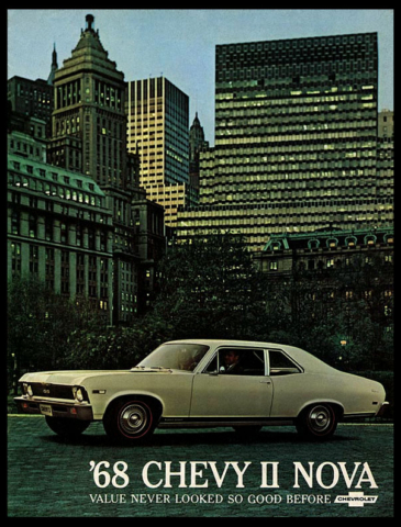 In 1968 the Nova Super Sport became a true performance car and was transformed from a trim package to a performance option.