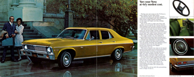 Many manufacturers were forced to lower the compression on their powerful motors from previous model years, due to new requirements for unleaded fuel and increased fuel efficiency, which drastically reduced horsepower and torque ratings. Rather than focus on performance, the Rally Nova was a loud statement that featured full racing stripes, Rally Nova stickers and badging, as well as Rally wheels. Overall, 7,700 Rally Novas were built during 1971.