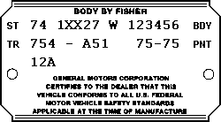 Line 1: Year, GM Division, Model & Body, Assembly Plant, Sequence Number