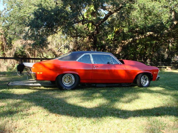 This is a street driven 1971 Pro Street Nova equipped with a 622 all aluminum big block with a F2 Procharger. The car is completely legal, but extremely loud!