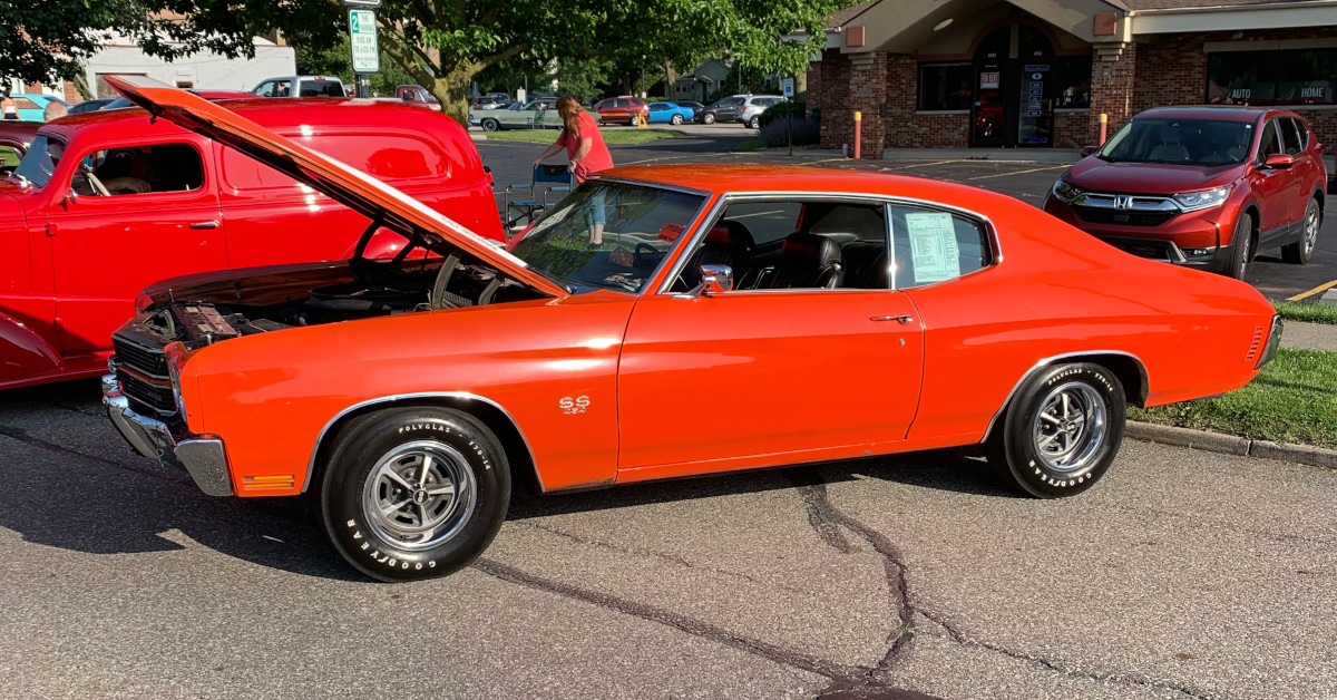 He is the second owner, and this particular car was a special order with Monaco Orange (ZP3) paint. Not only is the paint still original, but this was also originally a stripe delete car with functional cowl hood. Stripes were added to the 1970 Chevelle later in its life.