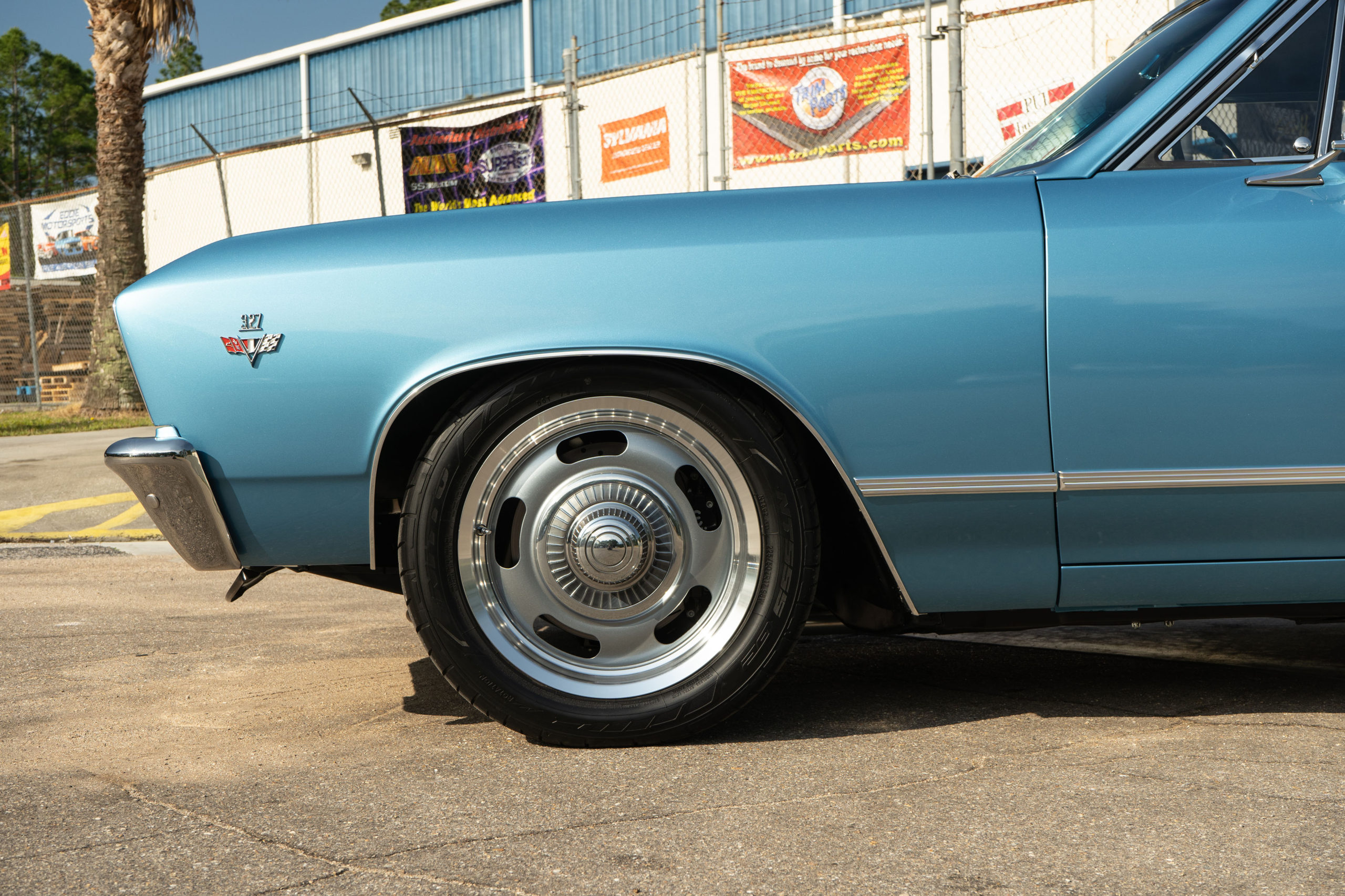 Jim purchased the car in 2005 from a friend of a friend in Sacramento Calif. It was mostly stock, with a worn-out 327, Saginaw 4 speed, and a bench seat. Jim wanted a ’67 Chevelle since he was a teenager in the early 80’s. His neighbor at that time had a Marina Blue one that was his daily driver. So, Jim heard it, and saw it every day. It was love at first sight for him!