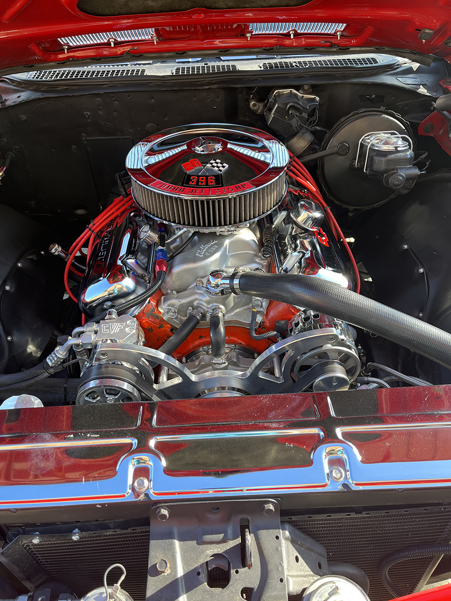 They bought the 1969 Chevelle with a 14-inch chrome air cleaner lid with the 396 Turbo-Jet emblems to make the engine look even better.