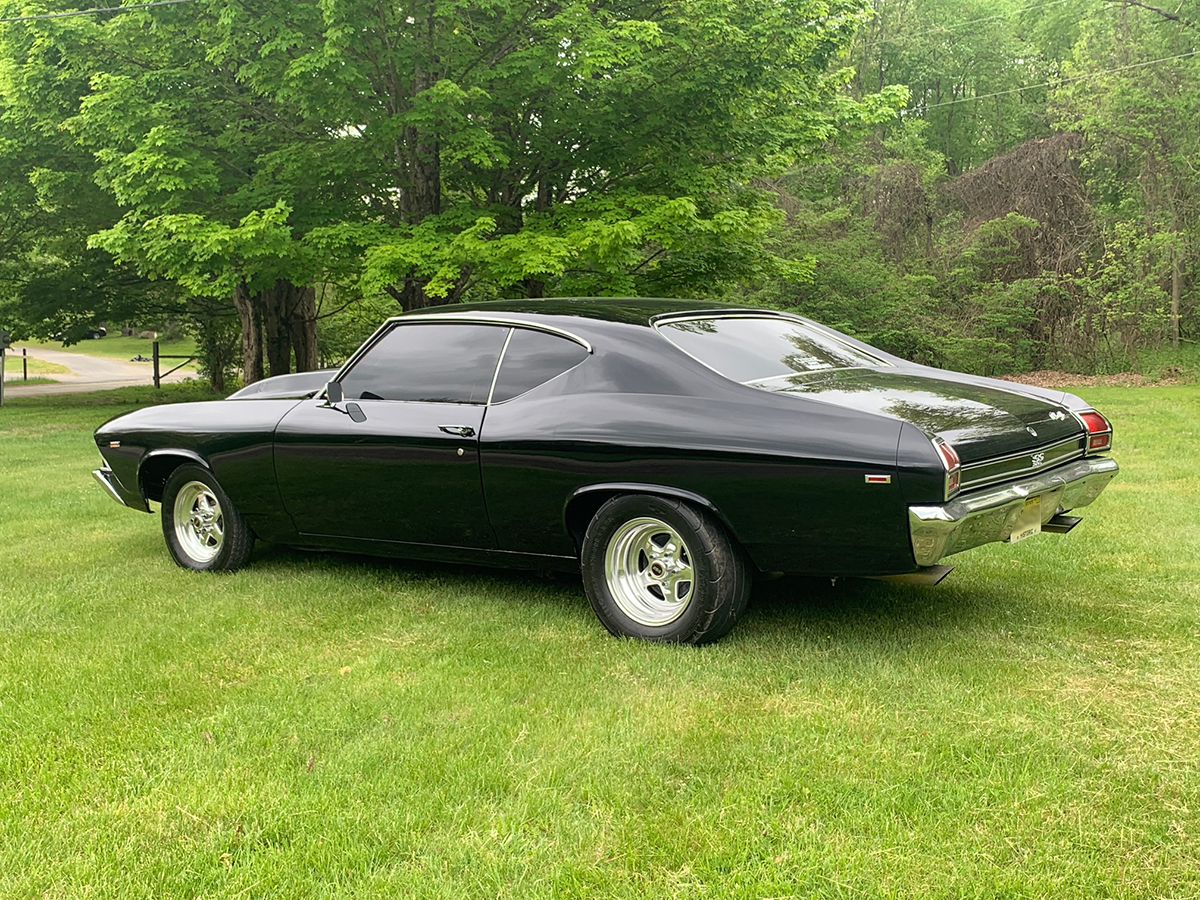 Mike has replaced nearly every body panel on this 1969 Chevelle except for the roof panel from Ground Up SS396.com. Other notable additions from Ground Up on Mike’s 1969 Chevelle include a 4-inch cowl hood, new moldings and trim, new bumpers, new emblems, and a deep window tint to go with the super-black paint.