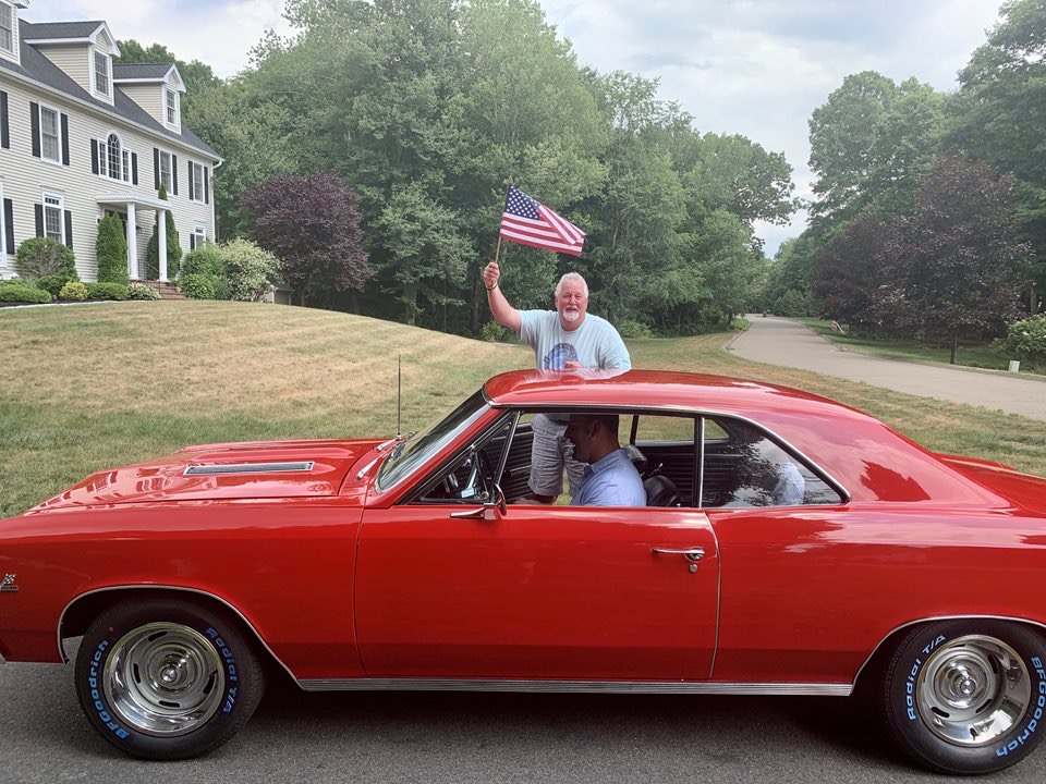 We were in the middle of the Covid pandemic and my parents live out of state. Due to the pandemic, we had not seen my parents since Christmas 2019. They are both very involved with attending all family gatherings and sports events, but due to the pandemic, that was not an option. We decided that July 4th weekend would be an opportune time to present the car to my dad and finally see my parents after 7 months. We told my parents that the local police/fire/ambulance were making their rounds in our neighborhood to celebrate the frontline workers and heroes of the pandemic. We would go outside and waive and thank them for their service.
