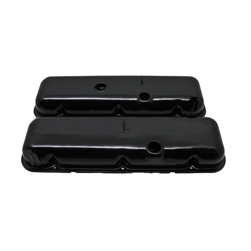 1964-1977 Chevelle big block OEM style painted black steel valve covers fit Gen 4 396-427-454 big block engines. These covers are baffled OEM Tall style and do not have dripper rails. Height: 2-3/4 inches.