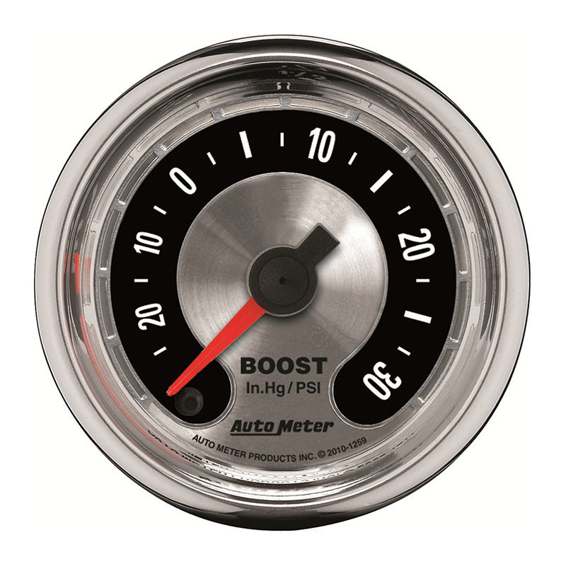 1964-1977 Chevelle AutoMeter 2-1/16in. Boost/Vacuum Gauge, 30 In Hg/30 PSI, Stepper Motor, American Muscle 1259
