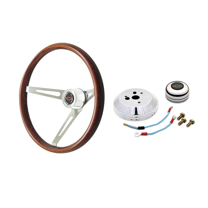 THIS WHEEL KIT INCLUDES A CHEVY BOWTIE LOGO HORN BUTTON. ADDITIONAL STYLES AND DESIGNS ARE AVAILABLE SEPARATELY.