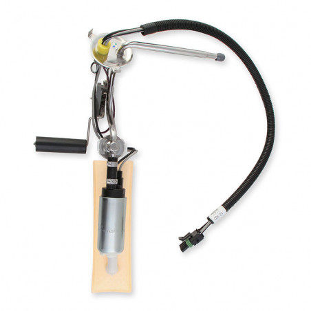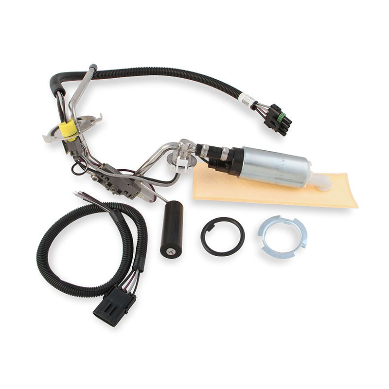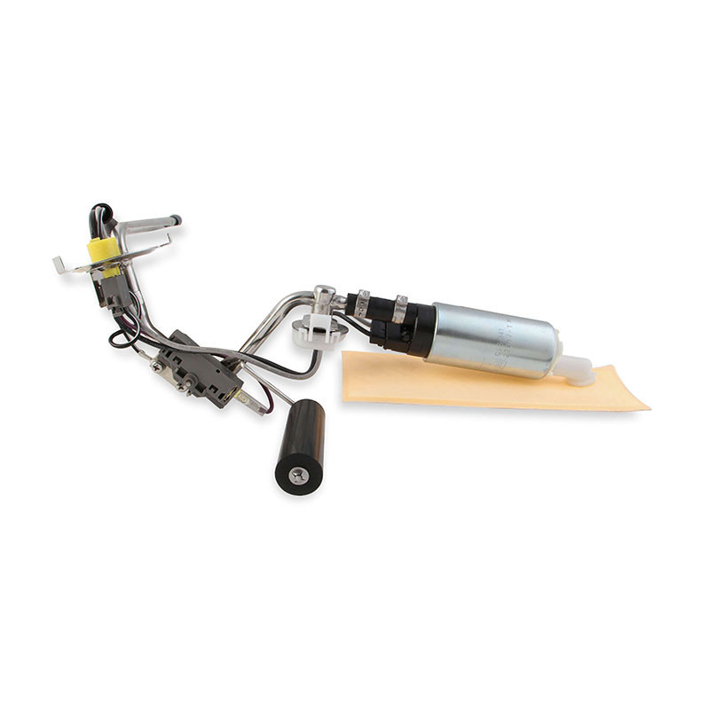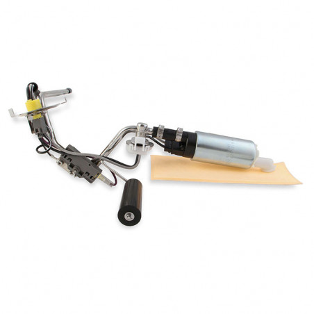 1968-1972 Chevelle in-tank fuel pump module is a high-pressure unit that flows 255 liters per hour (LPH) and is capable of supporting electronic fuel injection (EFI) engines producing up to 550 horsepower. A pre-calibrated fuel-level sending unit designed to work with the factory fuel gauge for this application is included.This module also features a HydraMat filter which has a unique internal reservoir that keeps fuel available at the pick-up and also provides protection from contaminates. Fuel pressure is internally regulated to 58 psi eliminating the added expense and effort of purchasing and installing an external fuel pressure regulator - no separate return line is required because this module returns excess fuel right inside the tank! This Muscle Car EFI Fuel Pump module was designed as a direct replacement for your factory pick-up and sending unit. There is no need to purchase a custom EFI fuel tank. You can even retain the factory fuel hard line - just connect the outlet of the pump module to the hard line on your vehicle with EFI-rated fuel hose and hose clamps available in the Earls Vapor Guard line. This Muscle Car EFI Module includes a 255 LPH fuel pump and a Holley HydraMat. HydraMat is an amazing patent-pending fuel reservoir system that reduces fuel starvation issues that might otherwise occur while cornering, accelerating, stopping, traversing inclines, and during low fuel conditions.Specifications:Free Flow LPH: 255Fuel Sending Unit Ohms: 90Fuel Type: GasolineInlet Diameter (in): 5/16 inch