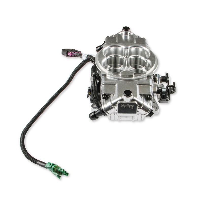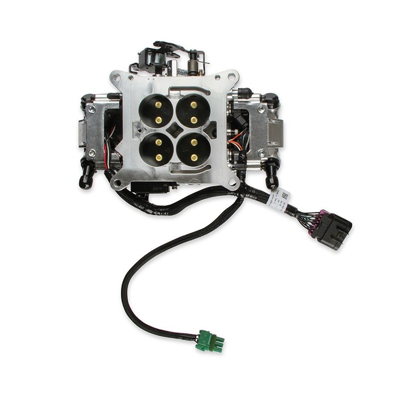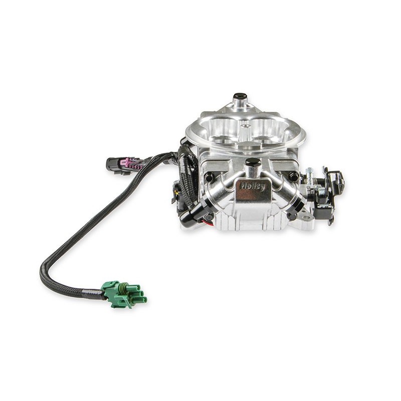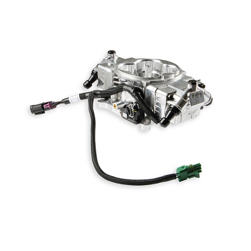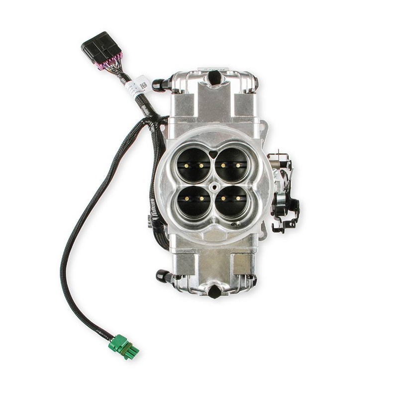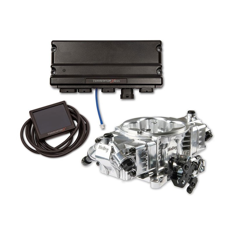 The Holley EFI Terminator X Stealth 4150 EFI system from Holley features 4, 100LB/HR Fuel Injectors capable of supporting up to 650 HP naturally aspirated or 600 HP on forced induction applications. The Holley EFI Terminator X ECU is capable of fuel map self-learning and ignition timing control, improving idle stability, drivability, and wide-open throttle horsepower! Did we mention that the Stealth 4150 also includes transmission kick down provisions for GM TH350/400, 200R4/700R4 and Ford C4/C6 applications? Holley EFI Terminator X Max Stealth 4150 kits provide transmission control for Pre-1964-1977 GM 4L60E/4L80E Transmissions (Part numbers 550-1011, 550-1012, 550-1013)Features:Bolt on 4150 Flange Carburetor ReplacementSupports up to 650HP with Four 100lb/hr InjectorsHolley EFI Terminator X Max Stealth 4150 kits provide transmission control for Pre-1964-1977 GM 4L60E/4L80E Transmissions (Part numbers 550-1011, 550-1012,550-1013) Part # 34-42 is required for a bolt-on installation.Internal 1bar MAP sensor, built into the Holley EFI Terminator X ECU.All of the wiring exits below the rear fuel injector cover, for a completely stealth installationTimed spark port for vacuum advanced distributors located under the front fuel bowl, for easy access to the distributorAir entry is machined to fit most stock style air cleaners with air cleaner locator provisionsExternal fuel pressure regulator required, set to a base pressure of 58.5 PSI, such as Holley part # 12-886Integrated ignition timing control improves idle stability, fuel economy, and wide open throttle performanceHigh Resolution Full Color Touchscreen for Initial Setup, Tuning, and Gauge DisplaysSimple Calibration Wizard (answer a few questions about your engine and it creates the base map, then starts tuning on its own!) - NO laptop requiredThe included Genuine Bosch LSU 4.9 Wideband Oxygen Sensor provides real-time Fuel Map LearnOEM Style TPS/IAC for years of dependable serviceAvailable in 3 finishes: Shiny, Black, and Gold