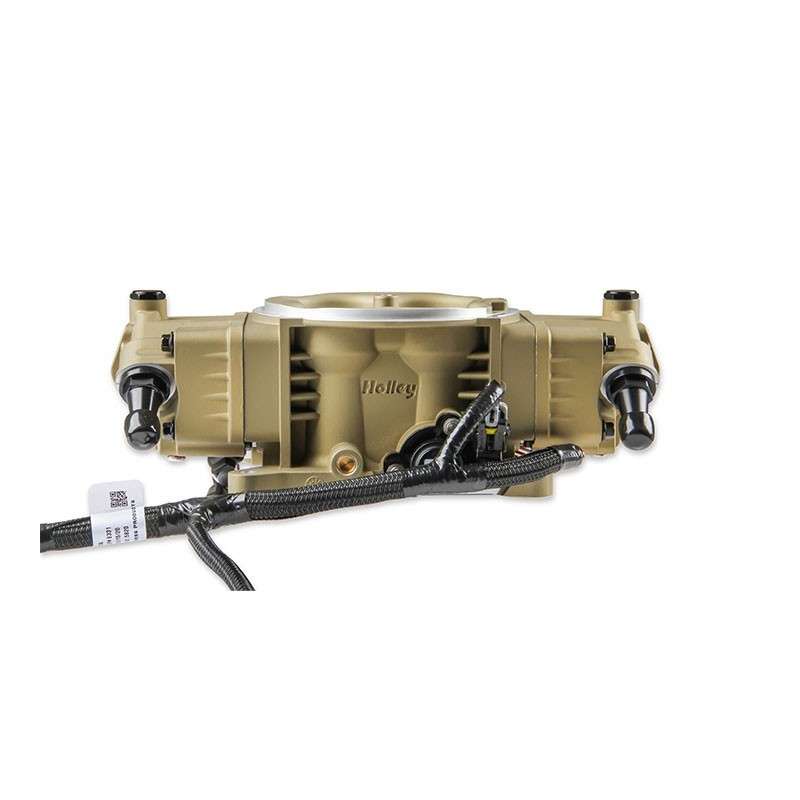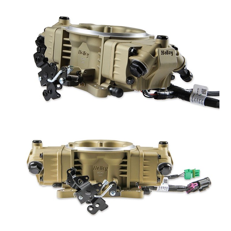 The Holley EFI Terminator X Stealth 4150 EFI system from Holley features 4, 100LB/HR Fuel Injectors capable of supporting up to 650 HP naturally aspirated or 600 HP on forced induction applications. The Holley EFI Terminator X ECU features fuel maps that self-learn and integrated ignition timing control, yielding improved idle stability, drivability, and horsepower at wide-open throttle! Did we mention that the Stealth 4150 also includes transmission kick down provisions for GM TH350/400, 200R4/700R4 and Ford C4/C6 applications? Holley EFI Terminator X Max kits provide plug and play Transmission control for GM 4L60 and 4L80 Transmissions.Features:Holley EFI Terminator X Stealth 4150 Kits for either 24x or 58x LS enginesSupports up to 650HP with Four 100lb./hr. InjectorsHolley EFI Terminator X Max kits provide plug and play Transmission control for GM TransmissionsInternal 1bar MAP sensor, built into the Holley EFI Terminator X ECU.All of the wiring exits below the fuel injector bowls, for a completely stealth installationAir entry machined to fit most stock style air cleaners with air cleaner locator provisionsExternal fuel pressure regulator required, set to a base pressure of 58.5 PSI, such as 12-886Integrated ignition timing control Plug and play with factory LS coil sub harness and OEM LS coils no external boxes/modules needed to run Coil Near PlugHigh Resolution Full Color Touchscreen for Initial Setup, Tuning, and Gauge DisplaysSimple Calibration Wizard (answer a few questions about your engine and it creates the base map, then starts tuning on its own!) - NO laptop required!Self-tuning ECU means you dont have to be a computer/tuning wiz to have EFI!4 Inputs 12v, Ground, 5v, and Frequency, for things such as additional pressure sensors, or activation triggers for nitrous activation, or a trans brake (Fuel and Oil Pressure Inputs are pre-terminated)4 Outputs Ground, PWM - , for accessories such as; fans, boost control, nitrous control, IAC Kit, and MoreThe included Genuine Bosch LSU 4.9 Wideband Oxygen Sensor provides real-time Fuel Map Learn!OEM Style TPS/IAC, for years of dependable serviceAvailable in 3 finishes: Shiny, Black and GoldCompatible with Holley EFI digital dashes, gauges and fuel system accessories