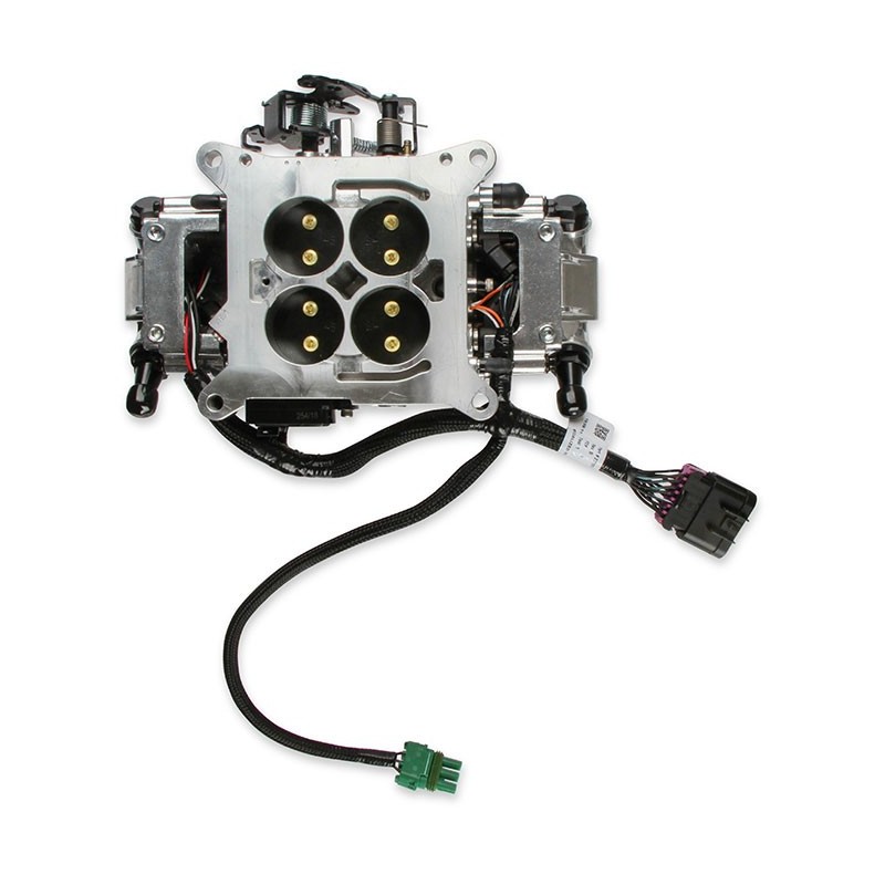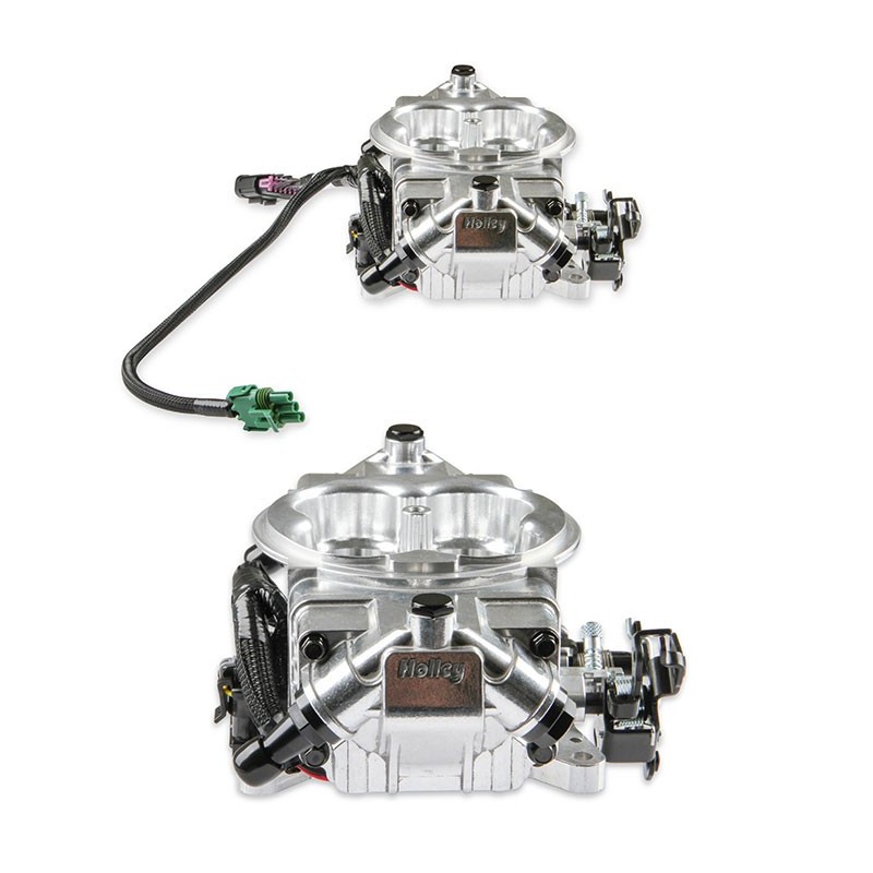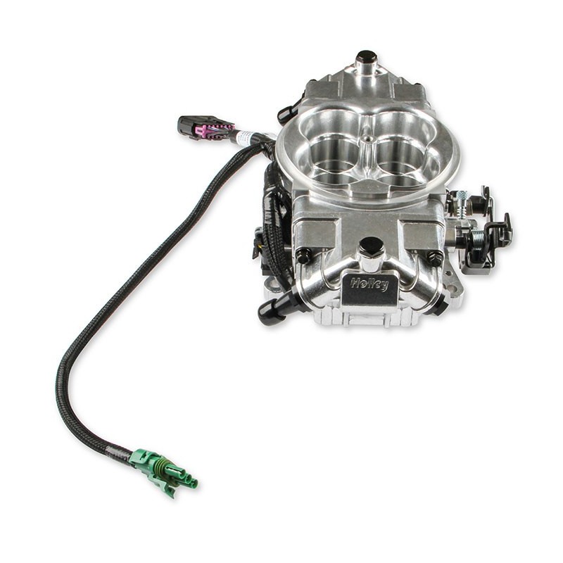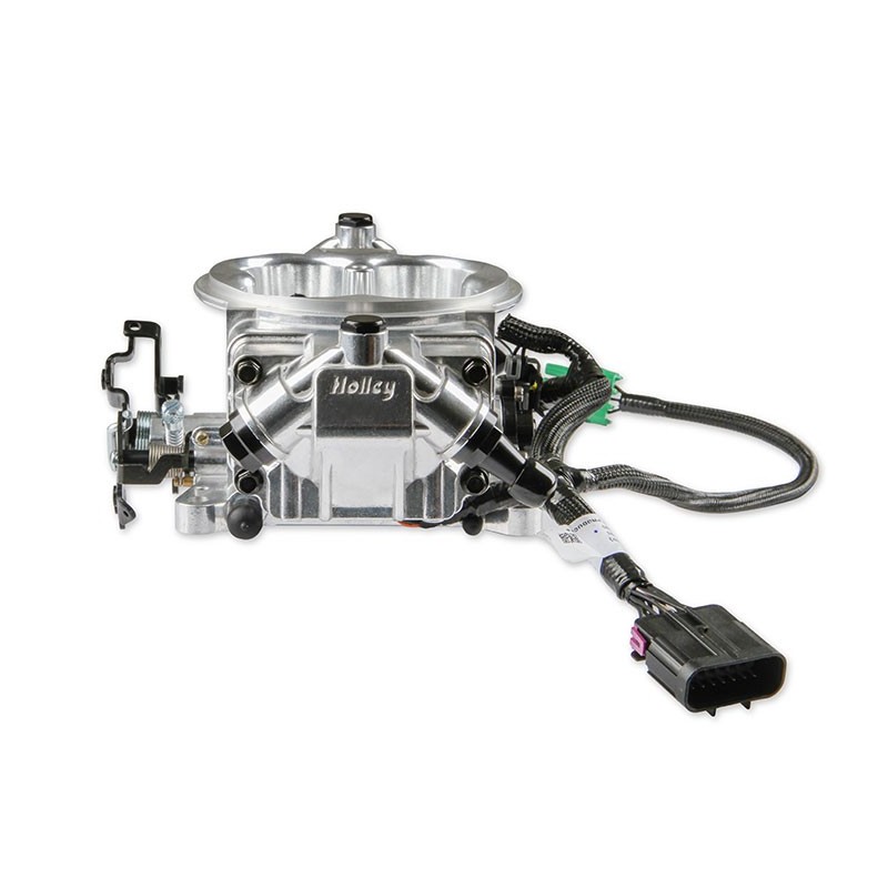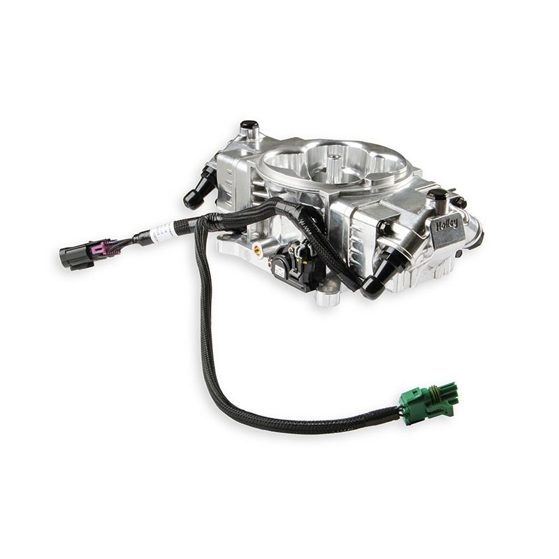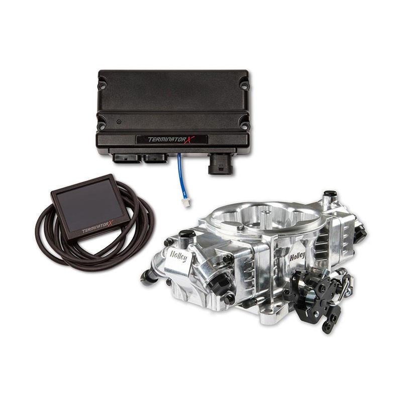 The Holley EFI Terminator X Stealth 4150 EFI system from Holley features 4, 100LB/HR Fuel Injectors capable of supporting up to 650 HP naturally aspirated or 600 HP on forced induction applications. The Holley EFI Terminator X ECU features fuel maps that self-learn and integrated ignition timing control, yielding improved idle stability, drivability, and horsepower at wide-open throttle! Did we mention that the Stealth 4150 also includes transmission kick down provisions for GM TH350/400, 200R4/700R4 and Ford C4/C6 applications? Holley EFI Terminator X Max kits provide plug and play Transmission control for GM 4L60 and 4L80 Transmissions.Features:Holley EFI Terminator X Stealth 4150 Kits for either 24x or 58x LS enginesSupports up to 650HP with Four 100lb./hr. InjectorsHolley EFI Terminator X Max kits provide plug and play Transmission control for GM TransmissionsInternal 1bar MAP sensor, built into the Holley EFI Terminator X ECU.All of the wiring exits below the fuel injector bowls, for a completely stealth installationAir entry machined to fit most stock style air cleaners with air cleaner locator provisionsExternal fuel pressure regulator required, set to a base pressure of 58.5 PSI, such as 12-886Integrated ignition timing control Plug and play with factory LS coil sub harness and OEM LS coils no external boxes/modules needed to run Coil Near PlugHigh Resolution Full Color Touchscreen for Initial Setup, Tuning, and Gauge DisplaysSimple Calibration Wizard (answer a few questions about your engine and it creates the base map, then starts tuning on its own!) - NO laptop required!Self-tuning ECU means you dont have to be a computer/tuning wiz to have EFI!4 Inputs 12v, Ground, 5v, and Frequency, for things such as additional pressure sensors, or activation triggers for nitrous activation, or a trans brake (Fuel and Oil Pressure Inputs are pre-terminated)4 Outputs Ground, PWM - , for accessories such as; fans, boost control, nitrous control, IAC Kit, and MoreThe included Genuine Bosch LSU 4.9 Wideband Oxygen Sensor provides real-time Fuel Map Learn!OEM Style TPS/IAC, for years of dependable serviceAvailable in 3 finishes: Shiny, Black and GoldCompatible with Holley EFI digital dashes, gauges and fuel system accessories