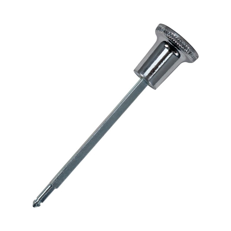 This is an authentic chrome 1965 Chevelle headlight knob with rod, crafted to meet original factory specifications. Featuring the correct design with a black accent, this knob and stem assembly is a perfect replacement for your classic Chevelle. It includes both the knob and the rod, and is stamped with the original GM part number 3860104, ensuring the highest quality and accuracy for your restoration project