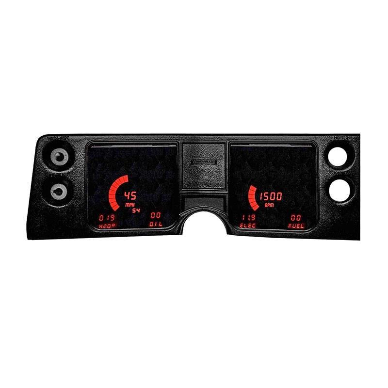 Feel the wind in your hair riding in your 1968 Chevelle with a state-of-the-art LED Digital Replacement Gauge Panel from Intellitronix. This dash comes with direct fit printed circuit boards, custom fit smoked plexiglass faceplate, universal water temperature S8013, oil pressure S8434, and speedometer S9013 sending units including sender and sensor for vehicles without electronic transmission or cruise control, and instructions for installation. Features:Speedometer reads up to 255 mph and includes odometer, trip meter, one button calibration, 0-60 time, _ mile elapsed time and high-speed recall.Tachometer displays 0-9999 RPM in 100, 10, or 1 RPM increments (ex. 9900, 9990, 9999). Fully programmable for 1-2-4-6-8-10-12-cylinder engines.Water Temperature displays a range of 18-255°F.Oil Pressure shows a range of 0-99 PSI.Voltmeter displays 7.0-18.0 volts range. No sending unit requiredFuel Level reads 0-99% range in 1% increments. User programmable to work with Ford, GM, Chrysler, VDO, and aftermarket 240-33 ohm industry standard fuel senders.The panel features turn signals, high beam indicators and parking brake.