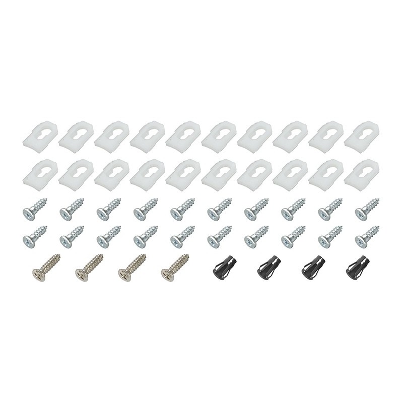 This 48-piece clip set contains the essential clips, screws and barrel nuts to fully install a vinyl top molding set.Kit Contains:20_ Clip, Molding, Universal, 7/16 inch Plastic OE Style to mimic original gauge cluster lookHybrid lighting to match the original styling and perimeter lighting and improve visibility with backlighting20_ Screw, Window Molding Clips4_ Barrel Nut, 3/16 inch, Each 4_ Screw, Sill Plate, 1964-1972, number 8x3/4 inch Domed Countersink Phillips, Chrome