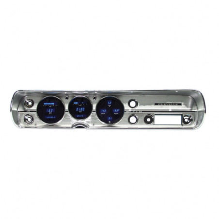 Dakota Digital Series III instrument systems offer the latest technologies and features for your custom Chevelle. High brightness vacuum fluorescent displays provide a lifetime of trouble free use while offering increased accuracy and features!Digital displays included with this instrument system:Speedometer (0-255 MPH or KPH)TachometerOil PressureWater TempVoltmeterFuel LevelAlso shown is: Odometer, Trip Odometer, Resettable Service Odometer and HourmeterNecessary sensors included for: Oil Pressure (1/8 in. NPT)Water Temp (1/8 in. with bushings for 1/4 in, 3/8 in, 1/2 in. NPT)Speedometer Pulse GeneratorSeveral performance calculations include: 0-60 MPH (0-100 KPH) timer, 1/4 mile timer, 1/4 mile speed display, High Speed recall and High RPM recall.Various Indicators can also be displayed such as: Turn Signals, High Beam, Check Engine, Parking Brake, Cruise Control, 4x4 (when equipped), Wait to Start (when equipped).Automatic Transmission gear indicator is also included, which will display the full name (ie: Park, Overdrive, etc.) of the current gear. Utilizing the gear position indicator will require the use of a Dakota Digital GSS-1965 sending unit.Dakota Digital instruments systems also include a Demonstration Mode which will cycle the instrument readouts while the vehicle is standing still. This is especially popular while the vehicle is on display at a show, event or simply displaying the instrument system.Full Metric conversions will cycle between MPH or KPH with the press of a button. If full (Celsius ; KPH) metric instrument systems are required, please specify upon ordering.For LS engine packages, a 12mm 12x 1.5 sender is included along with the 1/8 in. NPT oil pressure with bushings to adapt to metric threads as well as a mechanical > electrical pulse generator for older mechanical transmissions.Fuel level gauge can read either OEM sensor, or any aftermarket style currently available. A universal fuel level sender, SEN-06-1, can be purchased from Dakota Digital if necessary.Fully programmable speedometer for various tire sizes, rear-end gearing combinations, etc.Built-in dimmer will reduce the display intensity as headlights or parking lights are activated.Fully adjustable warning points alert the user of potential vehicle problems.Dakota Digital Instrument systems are normally shipped from the factory with '0' miles on the odometer and offer a one-time user adjustable odometer. Within the first 100 miles of operation, the odometer can be preset by the installer to whatever mileage they prefer. Once this has been set, or 100 miles have been logged on the odometer, this functionality goes away. This can always be reset at the factory and lessens the potential for tampering down the road.