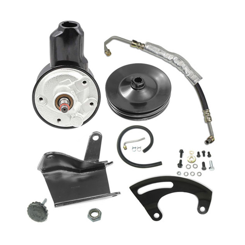 Are you tired of getting a workout every time you want to turn? Ground Up makes it easy to convert to power steering with this Chevelle power steering conversion kit! We have taken all of the guesswork out of selecting the parts to convert with this all in one solution!Includes: OEM Banjo Style Power Steering Pump Pump Cap Brackets Hardware Pulley Pulley nut Pressure Hose Return HoseKit Contains:(1) Power Steering Pump Return Hose Kit(1) All V8 Power Steering High Pressure Hose(1) Big Block Power Steering Hardware Kit(1) Power Steering Pump Pulley Double Groove For Air Conditioning(1) Big Block Power Steering Pump Adjustor(1) Big Block Power Steering Pump Cradle(1) Small & Big Block Power Steering Pump(1) Power Steering Pump Cap(1) Power Steering Pump Pulley Retaining Nut