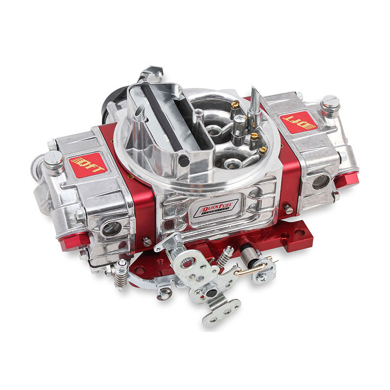 Super Street Series carburetors combine street-friendly drivability and track-capable performance in a single value-oriented package. Setting them apart from ordinary street carbs, they feature billet dual metering blocks and throttle-bodies that offer tighter tolerances and eliminate porosity. Not only are Super Street Series carbs available with both vacuum or mechanical secondaries, QFT also offers models designed and calibrated specifically for E85 fuel and blow-through forced induction applications. Running alternative fuel or boost no longer requires an expensive custom carburetor. All SS-Series carburetors are equipped with universal throttle levers to accommodate Ford A/T kickdown, GM 700 R4 mounting holes, and ability to mount brackets for Chrysler vehicles. Available in 8 different sizes, bolting on the ultimate street/strip carburetor has never been easier.Features:Billet dual metering blocks & throttle bodies for improved durabilityChangeable idle, high-speed air bleeds & power valve restrictionsDual inlet fuel bowls with dual sight glass windows for easy float adjustment4-Corner idle for precise idle and smooth transitionFully-adjustable electric choke with easy one wire hookupRace-ready with notched secondary floats and jet extensionsPolished or Black Diamond finish available (some models)Specifications:Barrels: 4Billet Color: RedBooster: Down LegCFM: 750Choke: ElectricCircuit: 2Finish: ShinyFuel: GasolineFuel System: CarburetedHigh Speed Air Bleed: 31Idle Air Bleed Size: 70Material: AluminumModel: Super Street SeriesPrimary Main Jet: 74Primary Power Valve: 65Primary Pump Nozzle Size: 31Secondaries: MechanicalSecondary Main Jet: 80Throttle Bore: 1-11/16 inch
