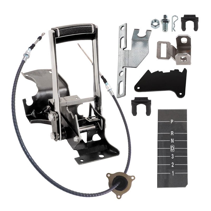 1971-1972 Chevelle console overdrive shifter conversion kit which includes a factory style staple shifter, cable, brackets, and all correct hardware to make the switch.Kit Contains:(1) Staple Shifter(1) Shifter Cable For Overdrive(1) Shifter Cable Mounting Stud(1) Shifter Cable Mounting Clip On Trans(1) Shifter Lever Cable Mounting Bracket(1) Universal Shifter Cable Mounting Bracket(1) Overdrive Shifter Detent(2) Transmission Cable Clips