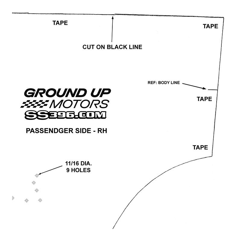 This is a 1970-1972 Chevelle SS fender emblem template which was blueprinted from an original GM fender to provide you with the correct mounting points for your SS fender emblems.