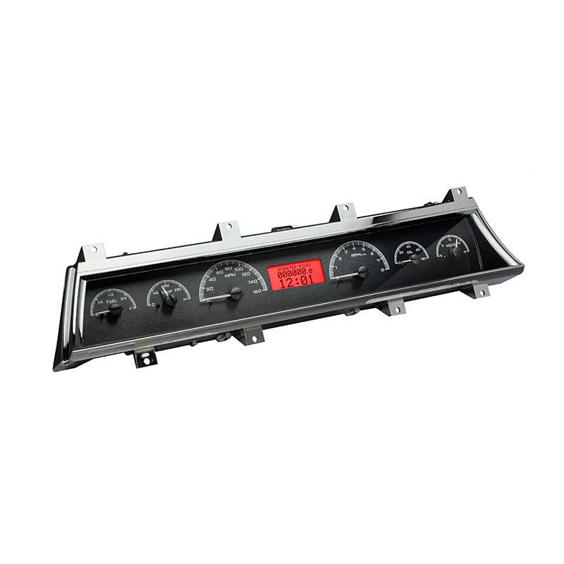 The new VHX Systems fit directly into the stock instrument bezel of a 1966-1967 Chevrolet Chevelle and Chevelle without modification, adding a wealth of features to this iconic vehicle.Fully lit needles, backlit faces, and highly visible LCD message centers are a few of the things that you can see which set the VHX Series apart from yesterday's traditional approach to instrumentation. A few of the features which you don't normally see are the micro-controlled precision stepper motors, solid state sensors for unparalleled accuracy, and user-customizable display feedback, all supported by an unrivaled limited lifetime warranty which has become the standard for Dakota Digital instrumentation systems. Completely engineered and manufactured in the USA, the VHX Series has completely revolutionized the instrumentation industry!Features:Analog Gauges:Speedometer : 0-160 MPHTachometer: 0-8000 RPMOil Pressure: 0-80 psiWater Temperature: 100-260 FahrenheitFuel Level: E, 1/4, 1/2, 3/4, FVoltmeter: 9-17 VDCLighting: Back lit technology is popular with performance instrumentation due to precise lighting allowing you to see what is truly important when you really need it at a quick glance. Each number, tick mark, annunciator, needle, indicator and digital message center is lit by a series of LEDs behind the gauge face.Digital Message Centers:Standard Displays: Odometer (one time user settable, million mile), Dual (A/B) Trip Meter (0-9,999.9), Clock (12 hour)Performance Meters: 0-60 MPH Timer, 1/4 Mile Time, 1/4 Mile End Speed (trap speed), High Speed Recall, High RPM RecallGauges: Speedometer (0-255 MPH), Tachometer (0-9,900 RPM), Oil Pressure (0-100 psi displayed in 1 psi increments), Water Temperature (100-300 degrees Fahrenheit displayed in 1 degree increments), Voltmeter (9-17 VDC), Fuel Level (0-99% full)Lighting: Auto-contrasting LCD display for optimal view in the brightest of sunlight, LED backlit at night to match/complete the look at nightBuilt-In Indicators:Turn SIgnalsHigh BeamCheck EngineParking BrakeCruise ControlGear Position (optional GSS-1966-1967 sensor required)4x4 (when vehicle is equipped)Wait to Start (when vehicle is equipped)Included Sensors:Water Temperature: 1/8 in. NPT, ground isolated sensor with a 10ft harnessOil Pressure: 1/8 in. NPT solid state sensor with a 10ft harnessCable Driven Speed Sensor/Generator: Replaces GM style speedometer cables with a 10ft harnessBushings: Each kit comes with 1/8 inch to 1/4 inch, 3/8 inch and 1/2 inch NPT bushings along with bushings for 12mm and 16mm x 1.5 threadsCalibration:Pushbutton: Dakota Digital instruments are programmed and operated by the push of a button. SImply mount the included pushbuttons supplied with your gauges in a convenient and easily accessible location. These buttons are used to calibrate your speedometer, set the cylinder count and fuel level gauge. Once properly configured, these same buttons are used to access the wealth of information located in the Digital Message Centers