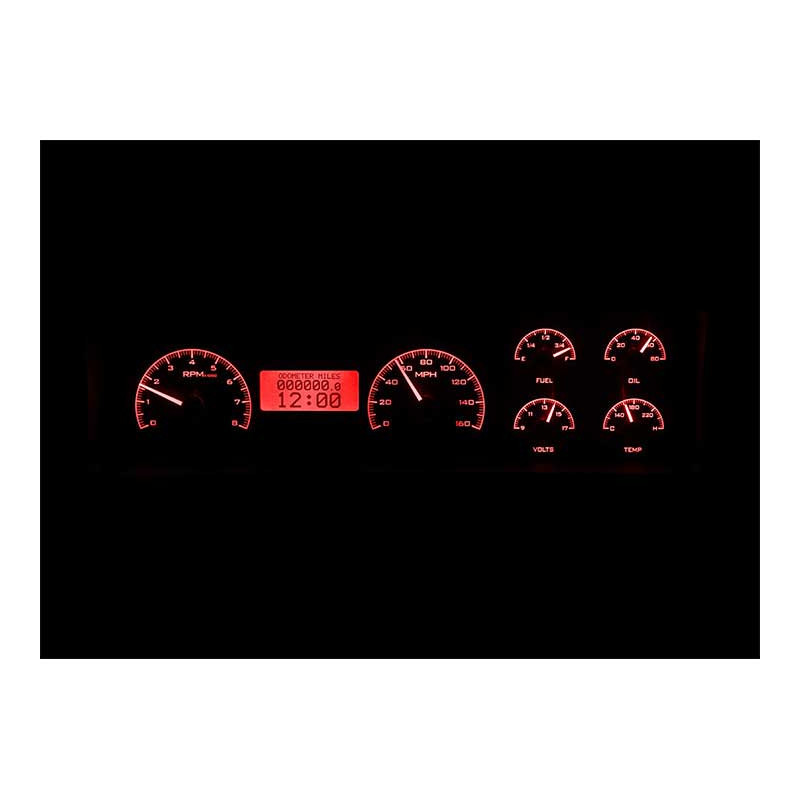 The new VHX systems fit directly into the stock instrument bezel of a 1970-1972 Chevrolet Chevelle (non-SS dash) without modification, adding a wealth of features to this iconic vehicle.Fully lit needles, backlit faces, and highly visible LCD message centers are a few of the things that you can see which set the VHX Series apart from yesterday's traditional approach to instrumentation. A few of the features which you don't normally see are the micro-controlled precision stepper motors, solid state sensors for unparalleled accuracy, and user-customizable display feedback, all supported by an unrivaled limited lifetime warranty which has become the standard for Dakota Digital instrumentation systems. Completely engineered and manufactured in the USA, the VHX Series has completely revolutionized the instrumentation industry!Features:Analog Gauges:Speedometer : 0-160 MPHTachometer: 0-8000 RPMOil Pressure: 0-80 psiWater Temperature: 100-260 FahrenheitFuel Level: E, 1/4, 1/2, 3/4, FVoltmeter: 9-17 VDCLighting: Back lit technology is popular with performance instrumentation due to precise lighting allowing you to see what is truly important when you really need it at a quick glance. Each number, tick mark, annunciator, needle, indicator and digital message center is lit by a series of LEDs behind the gauge face.Digital Message Centers:Standard Displays: Odometer (one time user settable, million mile), Dual (A/B) Trip Meter (0-9,999.9), Clock (12 hour)Performance Meters: 0-60 MPH Timer, 1/4 Mile Time, 1/4 Mile End Speed (trap speed), High Speed Recall, High RPM RecallGauges: Speedometer (0-255 MPH), Tachometer (0-9,900 RPM), Oil Pressure (0-100 psi displayed in 1 psi increments), Water Temperature (100-300 degrees Fahrenheit displayed in 1 degree increments), Voltmeter (9-17 VDC), Fuel Level (0-99% full)Lighting: Auto-contrasting LCD display for optimal view in the brightest of sunlight, LED backlit at night to match/complete the look at nightBuilt-In Indicators:Turn SIgnalsHigh BeamCheck EngineParking BrakeCruise ControlGear Position (optional GSS-1970-1972 sensor required)4x4 (when vehicle is equipped)Wait to Start (when vehicle is equipped)Included Sensors:Water Temperature: 1/8 in. NPT, ground isolated sensor with a 10ft harnessOil Pressure: 1/8 in. NPT solid state sensor with a 10ft harnessCable Driven Speed Sensor/Generator: Replaces GM style speedometer cables with a 10ft harnessBushings: Each kit comes with 1/8 inch to 1/4 inch, 3/8 inch and 1/2 inch NPT bushings along with bushings for 12mm and 16mm x 1.5 threadsCalibration:Pushbutton: Dakota Digital instruments are programmed and operated by the push of a button. SImply mount the included pushbuttons supplied with your gauges in a convenient and easily accessible location. These buttons are used to calibrate your speedometer, set the cylinder count and fuel level gauge. Once properly configured, these same buttons are used to access the wealth of information located in the Digital Message Centers