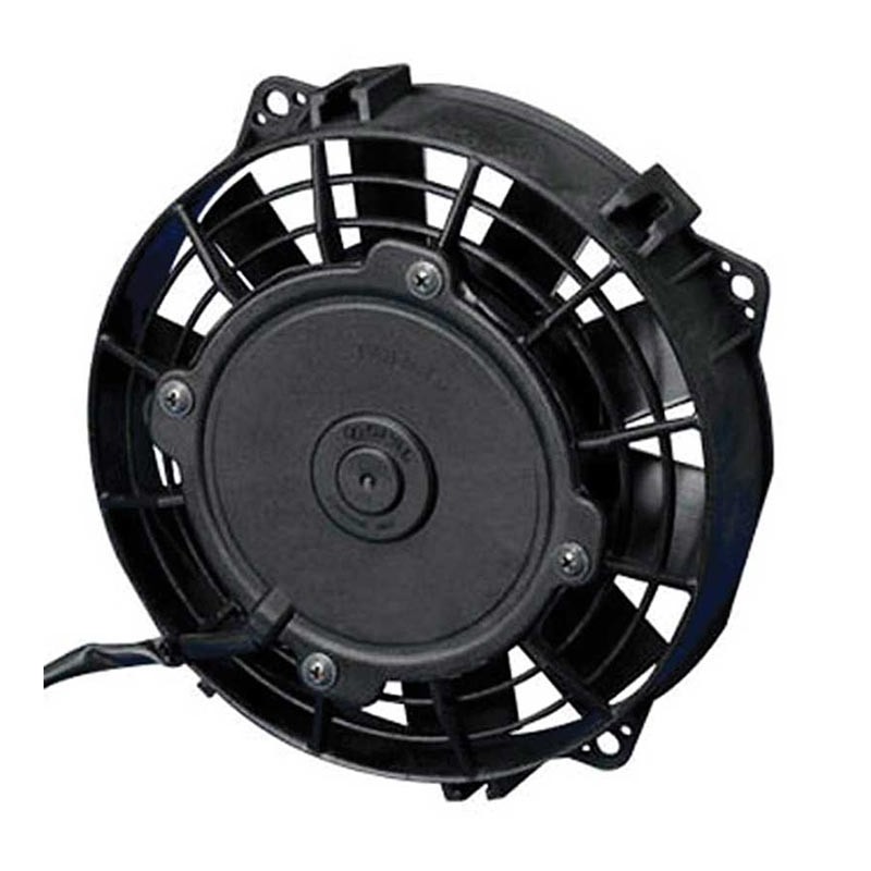 SPAL electric fans and accessories are built to meet the most rigorous cooling requirements needed for today's high performance automotive applications. SPAL fans are durable, reliable, and the choice of many NASCAR teams. SPAL offers a variety of high performance fans perfect for your motorcycle, ATV, automotive, and/or oil cooler applications. Manufactured from sturdy plastic, individually balanced for long service life, and most feature a fully sealed waterproof/dust proof motor for reliable performance in the most extreme conditions. SPAL fans can be mounted to any radiator with universal brackets and shrouds.Key Features:325 CFMPull Fan DesignStraight Style BladesLow Profile Motor DesignHeight; 7.24inWidth; 7.02inDepth; 2.03inFeatures fully sealed motor to IP68 standards making them waterproof/dust proof12V