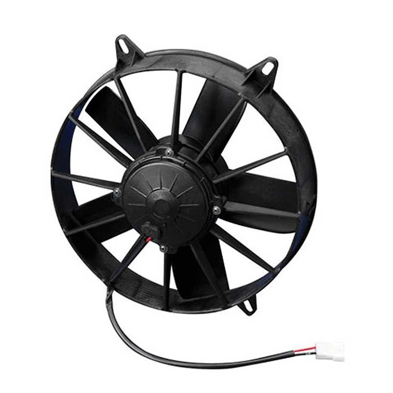 SPAL electric fans and accessories are built to meet the most rigorous cooling requirements needed for today's high performance automotive applications. SPAL fans are durable, reliable, and the choice of many NASCAR teams. SPAL offers a variety of high performance fans perfect for your motorcycle, ATV, automotive, and/or oil cooler applications. Manufactured from sturdy plastic, individually balanced for long service life, and most feature a fully sealed waterproof/dust proof motor for reliable performance in the most extreme conditions. SPAL fans can be mounted to any radiator with universal brackets and shrouds.Key Features:1363 CFMPull Fan DesignStraight Style BladesLow Profile Motor DesignHeight; 9.74inWidth; 13.02inDepth; 3.76inFeatures fully sealed motor to IP68 standards making them waterproof/dust proof12V