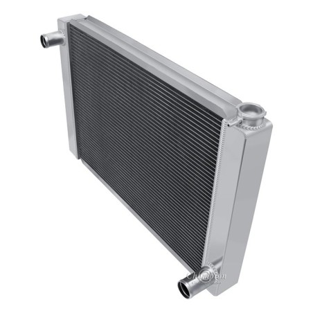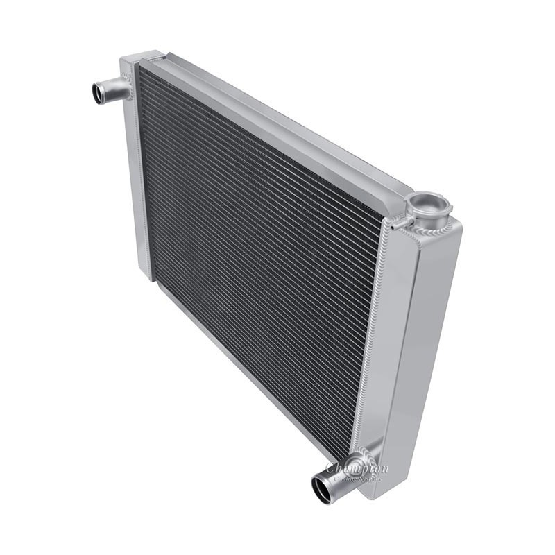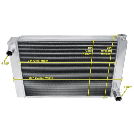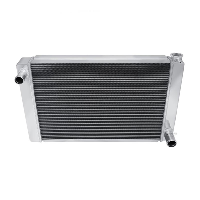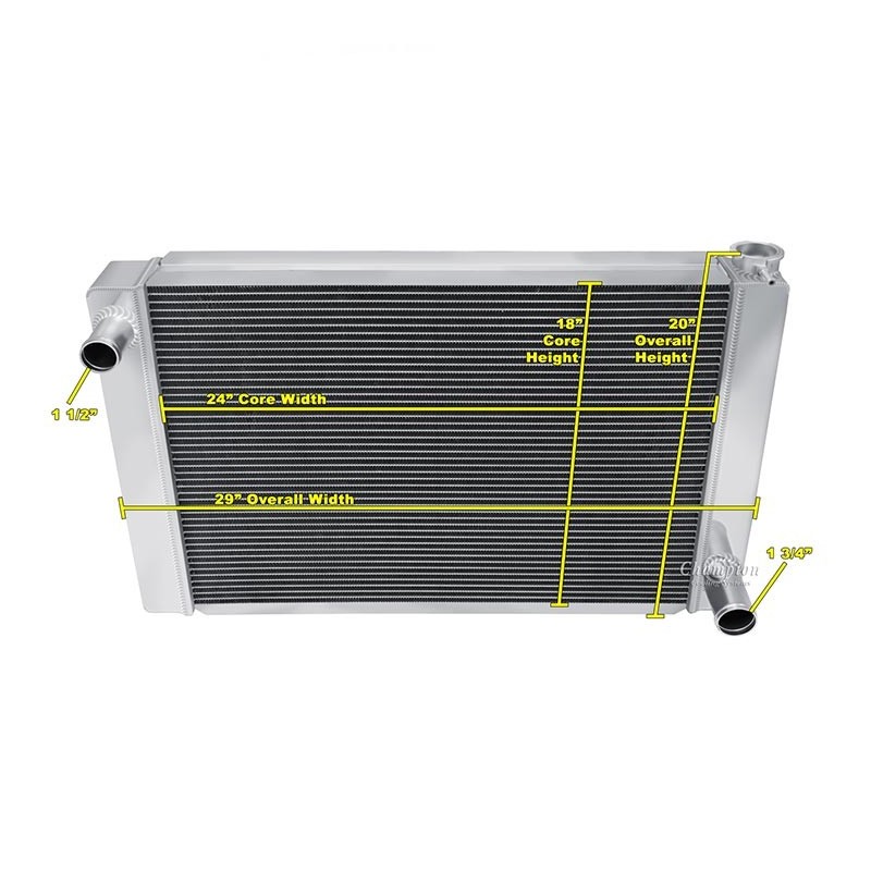 Champion's Universal Crossflow Radiators . These are 3-Tube Cores designed for the Do-It-Yourselfer who can create their own mounting system in their vehicle. These are 'Race Ready', and are made without provisions for a Drain Petcock or a Transmission Cooler. Three Hose Configurations to fit a multitude of engine applications double-pass design. Great for the track or the street in a very budget-friendly pricing package. These include our standard polish and a radiator cap, as well as a vent fitting on the filler neck.IncludesCORE DIM (H x W): 18 x 24OVERALL (H x W): 20 x 29I 3 ROW CORE THICKNESS: 2 1/4 Inch 3 ROW TANK THICKNESS: 3 Inch HOSE LOCATIONS: In - Driver / Out - PassengerHOSE FITTINGS: In -1 1/2 Inch - Out -1 3/4 InchTRANS COOLER: Not availableMOUNTING TYPE: Universal fit saddle mount)3 Row - Three Rows of 5/8 Inch Tubes = Approx. 600-800+ Horsepower Cooling Capacity.