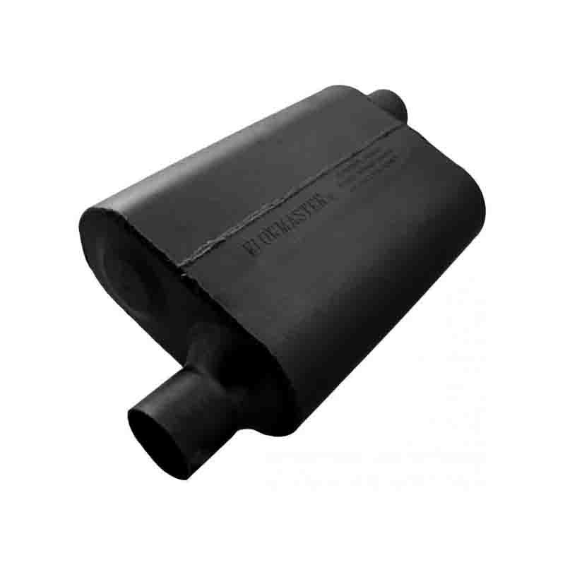 This two chamber design incorporates Flowmaster's patented Delta Flow technology. The Delta deflectors generate increased scavenging for better performance and reduced interior sound. Milder exterior tone and reduced interior resonance over Original 40 series. Constructed of 16 gauge aluminized steel and fully MIG welded for maximum durability.Features:No internal packing to blowoutExcellent Street/Strip and Off Road applicationRace proven patented Delta Flow technologyDurable fully welded 16 gauge aluminized steelSpecifications:Body Height (in): 4Body Length (in): 13Body Width (in): 9.75Fitment: UniversalInlet Connection Type: Pipe ConnectionInlet Diameter (in): 2.25Inlet Position: OffsetMaterial: Aluminized SteelMount Type: Uses New Hangers (Not Included)Muffler Series: 40 Series Delta FlowMuffler Type: ReflectionOutlet Connection Type: Pipe ConnectionOutlet Diameter (in): 2.25Outlet Position: OffsetOverall Length (in): 19Shape: OvalSound Level: Aggressive Sound
