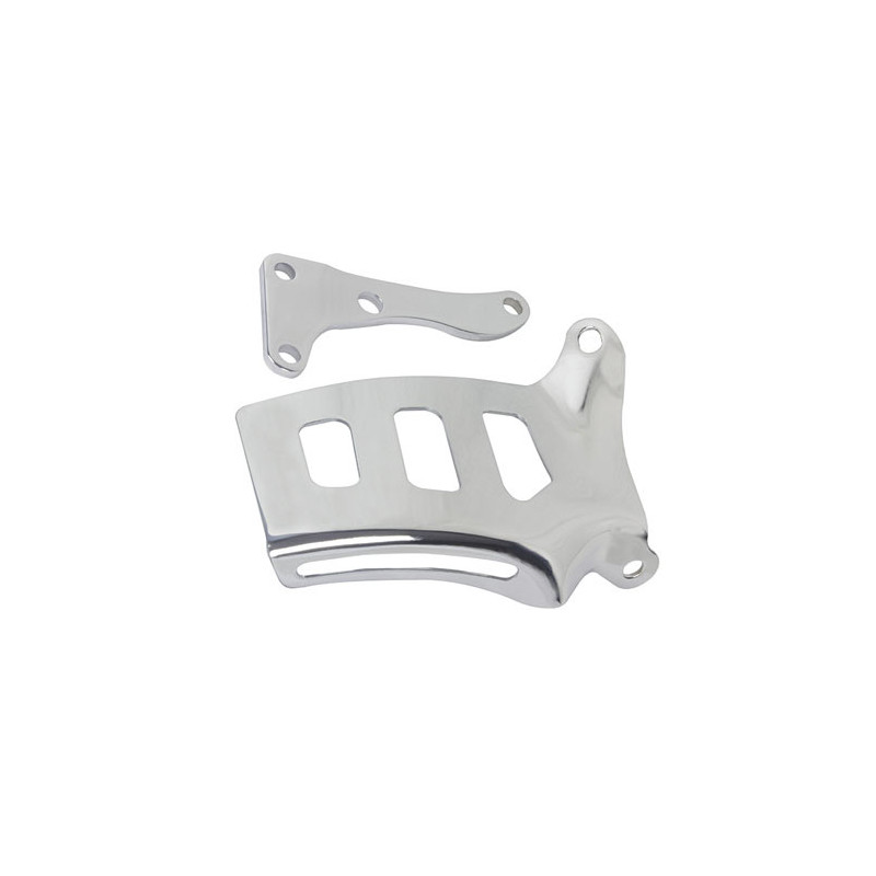 This is a modern style chrome plated steel upper alternator bracket. These high quality brackets will give your show car that final touch. This bracket fits small block Chevy long water pump applications.