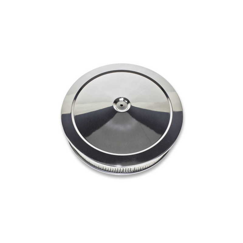 This is Ground Up's muscle car style chrome air cleaner complete with paper element and recessed base. Includes stud and wing nut.